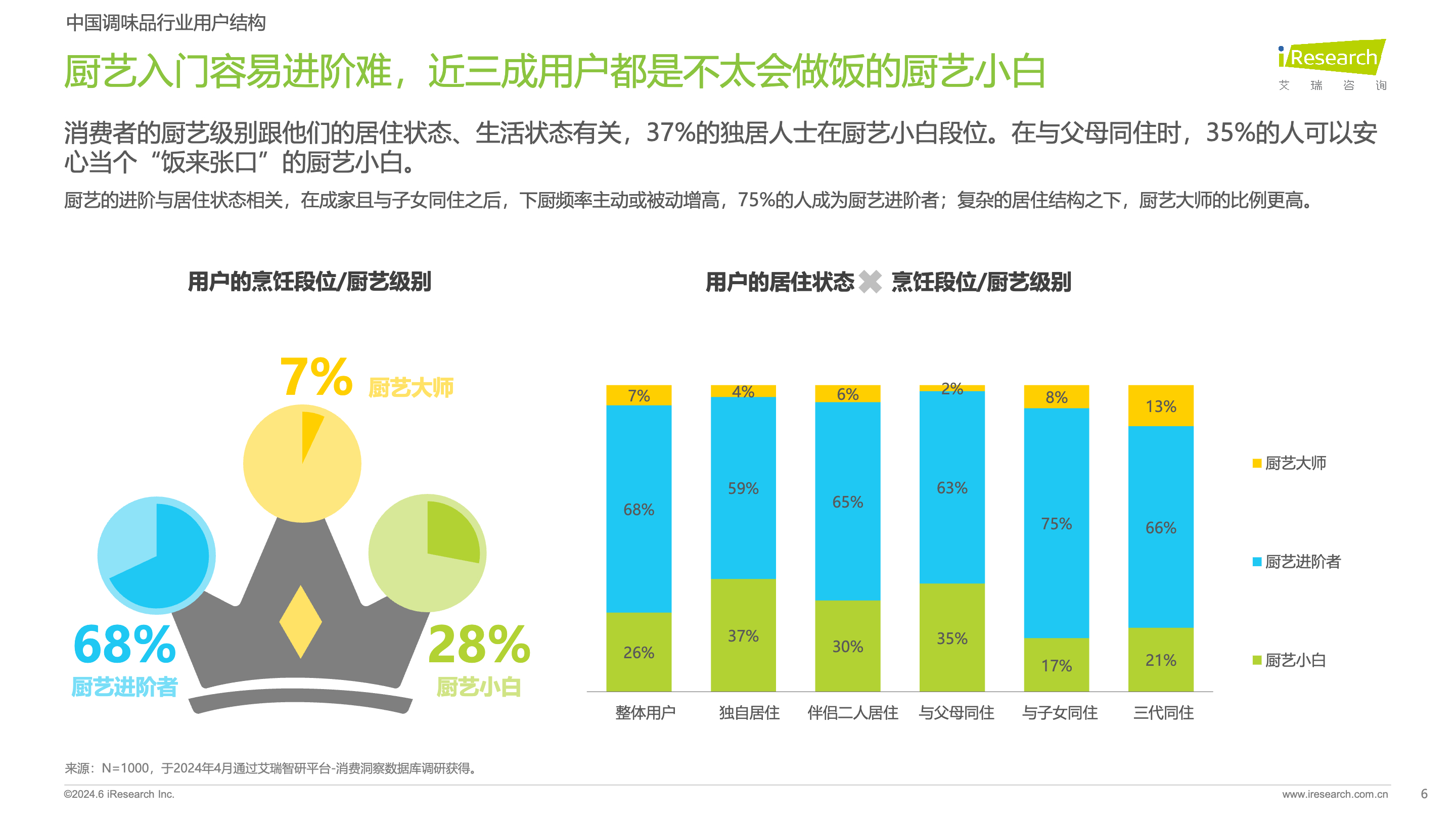 厨艺入门容易进阶难,近三成用户都是不太会做饭的厨艺小白。相较于基础调味品,复合调味品的原材料丰富、标准化程度较高,能帮助消费者有效节省烹饪时间和降低烹饪难度。60%的用户购买复合调味品是为了图省心,一料多用,百搭随心配。 另外,即使人均做饭成本上升,也挡不住中国人爱下厨的DNA。大众对健康饮食习惯的理解是“减”少负担、增“加”营养、尽量少吃。“味道好吃、配方健康、配料表干净”是用户购买调味品的三大关注因素。 更多调味品相关趋势及案例分析,可查看完整报告了解更多~