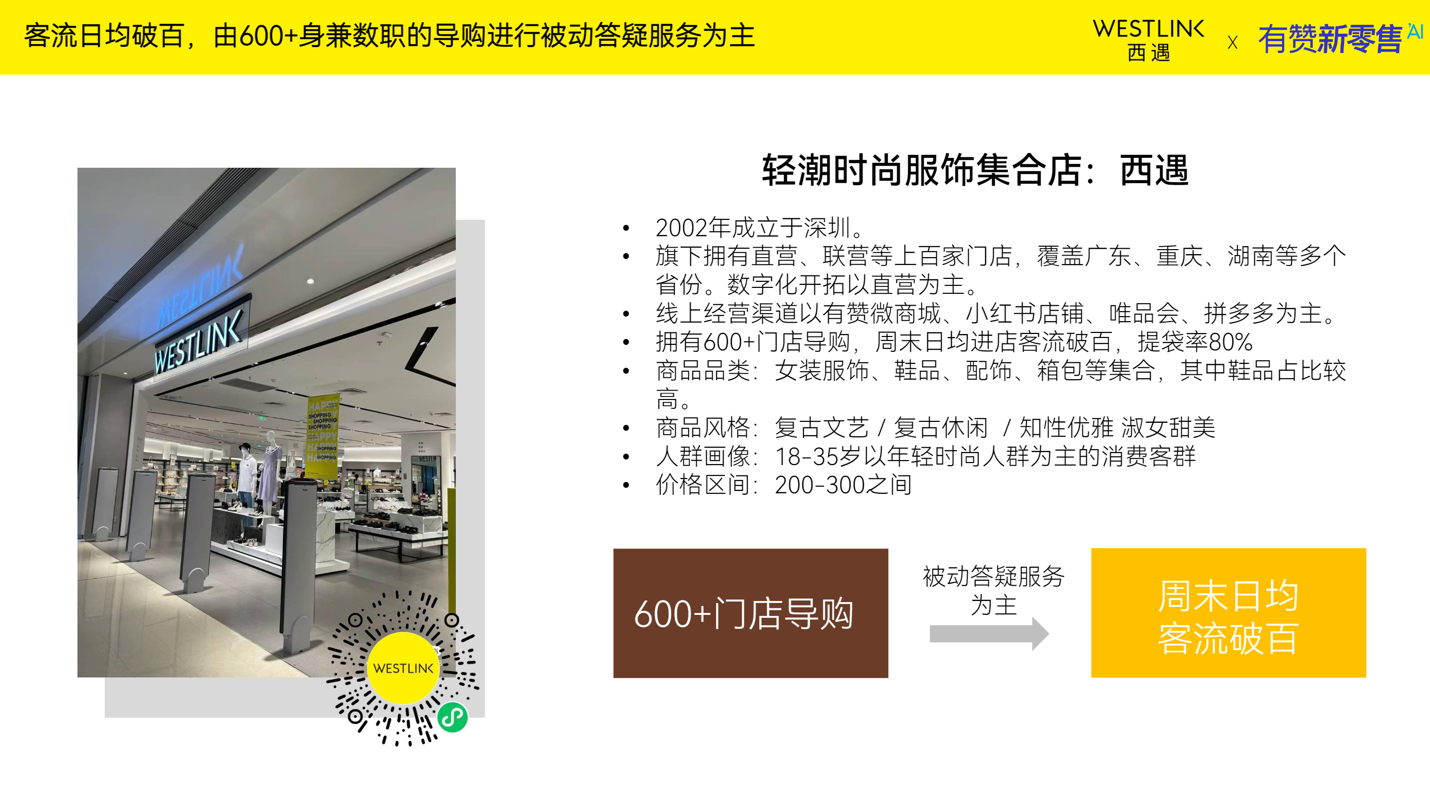 轻潮时尚服饰集合店:西遇。2002年成立于深圳,旗下拥有直营、联营等上百家门店,覆盖广东、重庆、湖南等多个 省份。数字化开拓以直营为主。
