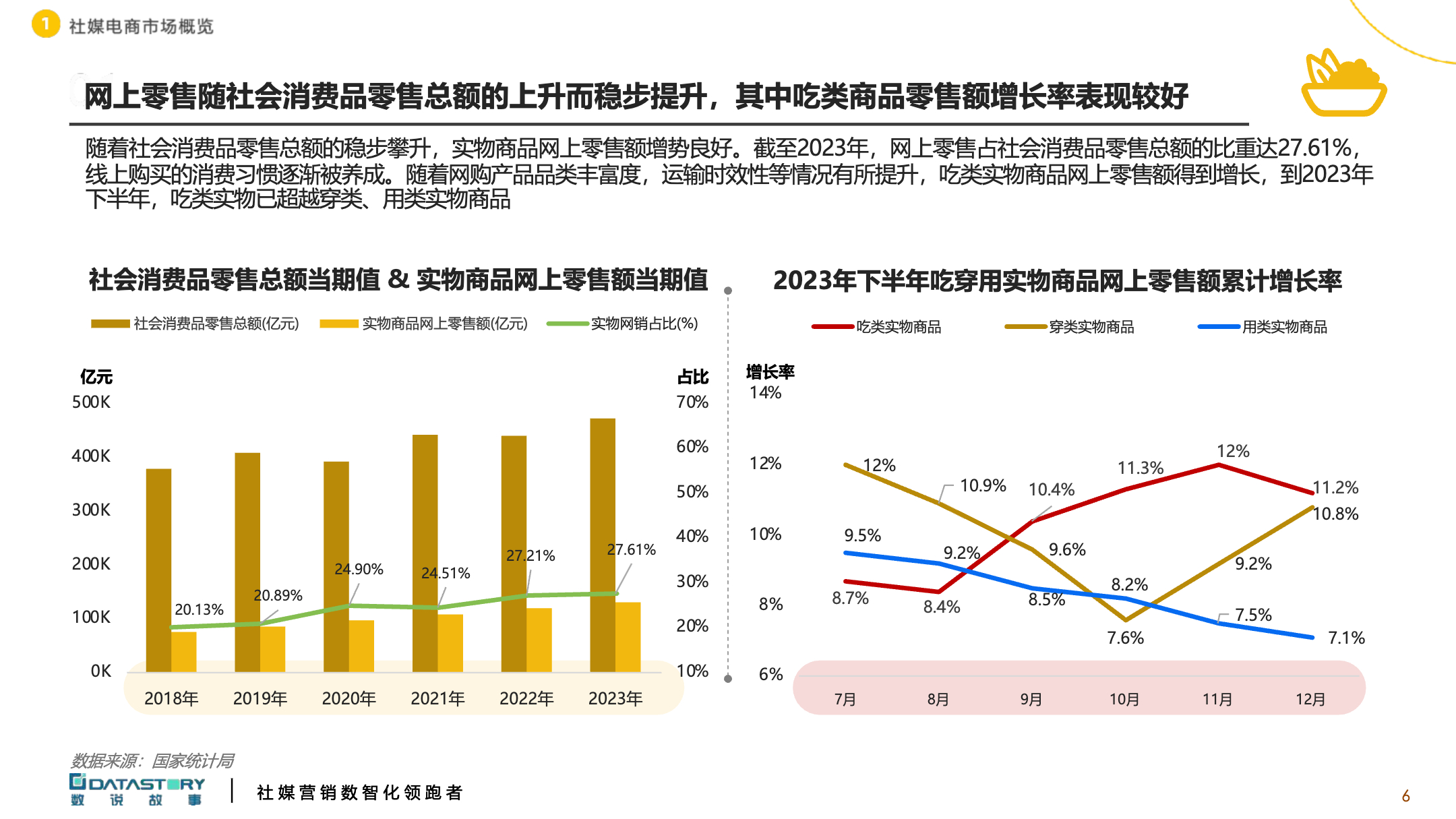 网上零售随社会消费品零售总额的上升而稳步提升,其中吃类商品零售额增长率表现较好,其中,咖啡、液奶、巧克力类目同比增速较高,具有较高发展潜力。 本报告旨在研究电商部分食饮行业类目的人群成交及用户画像,全面挖掘消费者面临的产品体验问题和需求,为食品品类产品创新趋势提供参考。