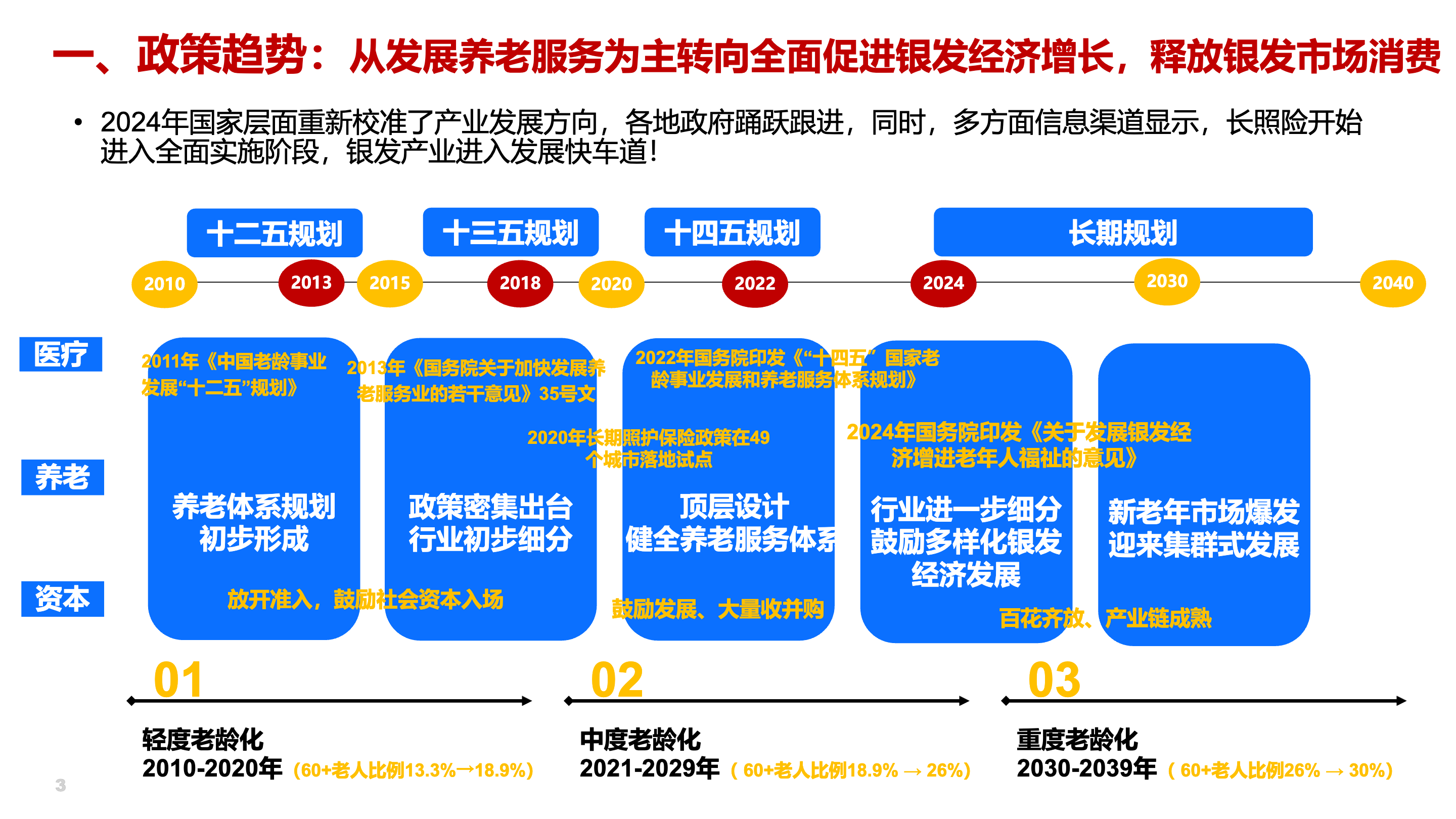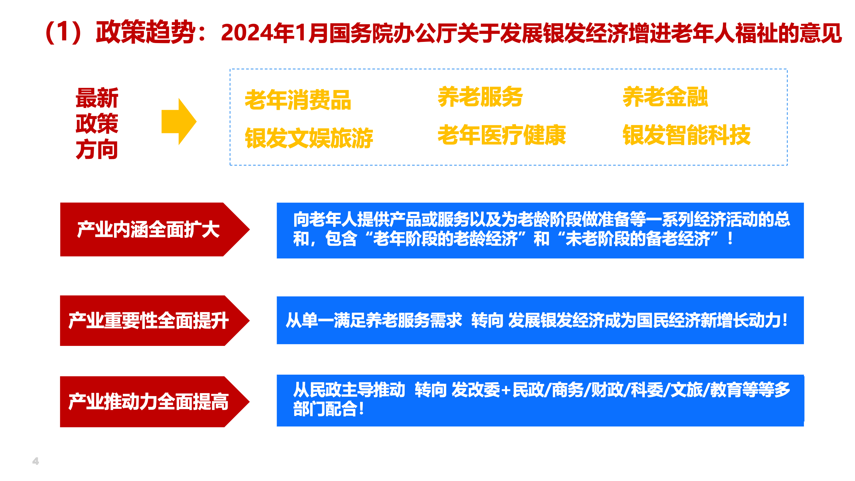 新老人、新需求、新生态下,2024 年银发健康经济趋势与展望如何? 我们会从以下3方面做分析: 1.2024年中国银发经济发展趋势 2.中国新老年群体消费行为变化趋势 3.中国银发经济健康消费需求机会 查看完整报告获取更多信息解读,帮助商家抓住第二增长曲线。