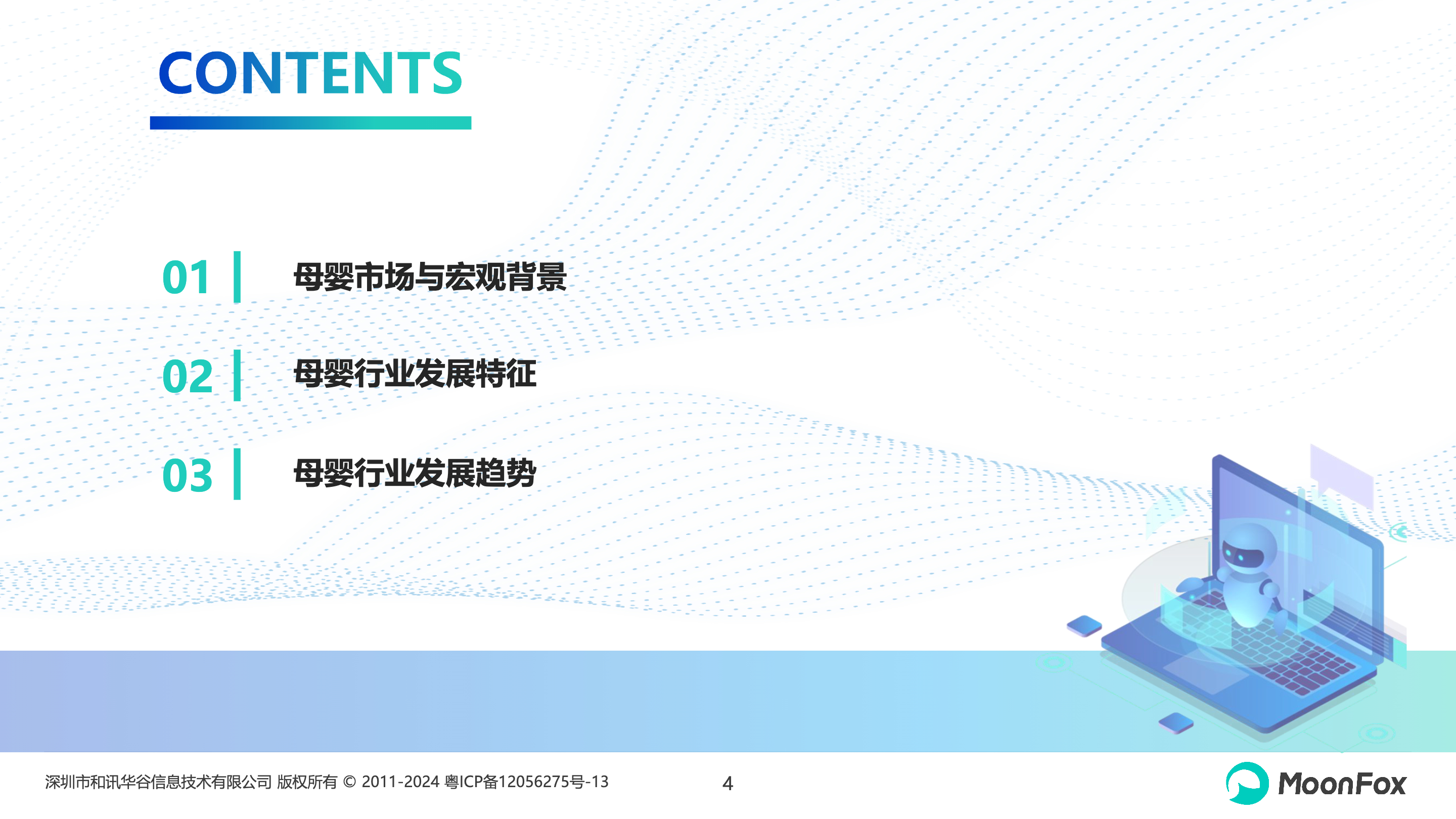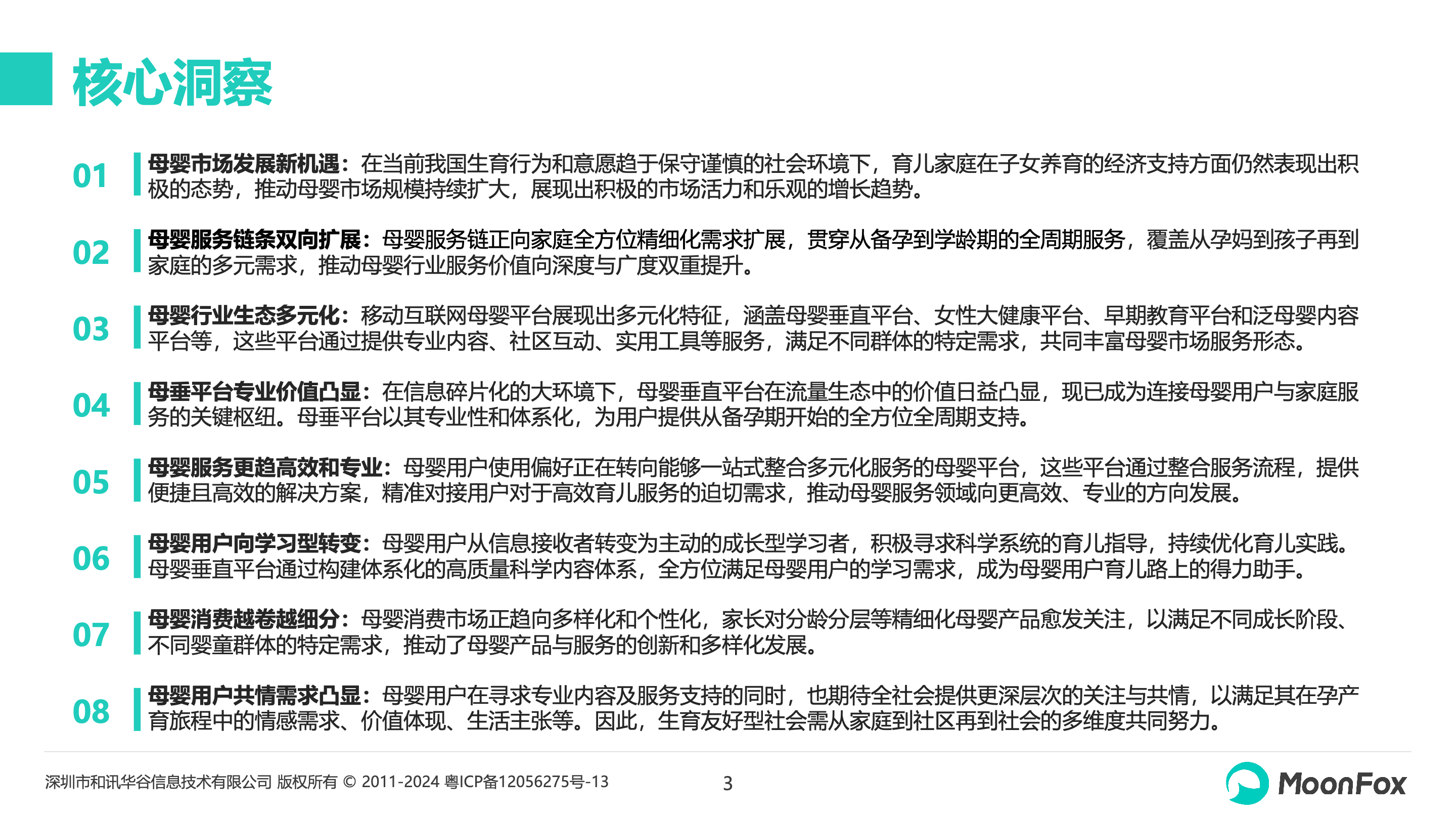 本报告主要聚焦中国母婴市场,分析宏观环境变化、母婴消费、母婴平台运营等内容,帮助市场了解当下母婴市场的发展现状和趋势,同时列举头部企业案例进行分析,帮助母婴相关商家更好地抓住市场机遇。