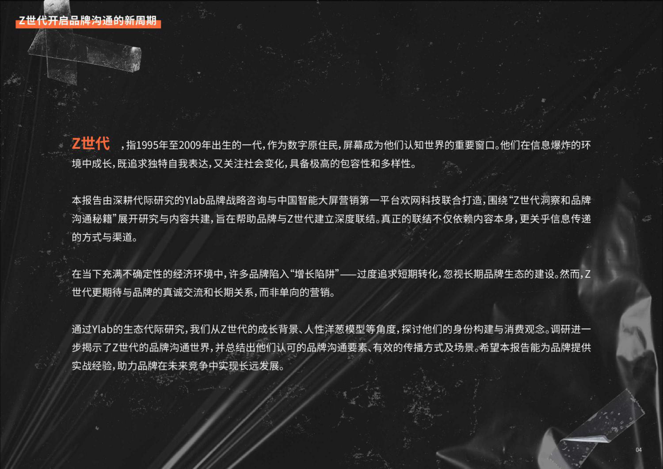 在当下充满不确定性的经济环境中,许多品牌陷入“增长陷阱”,过度追求短期转化,忽视长期品牌生态的建设。然而,Z世代更期待与品牌的真诚交流和长期关系,而非单向的营销。 通过本报告研究,我们从Z世代的成长背景、人性洋葱模型等角度,探讨他们的身份构建与消费观念。进一步揭示了Z世代的品牌沟通世界,并总结出他们认可的品牌沟通要素、有效的传播方式及场景。希望本报告能为品牌提供实战经验,助力品牌在未来竞争中实现长远发展。