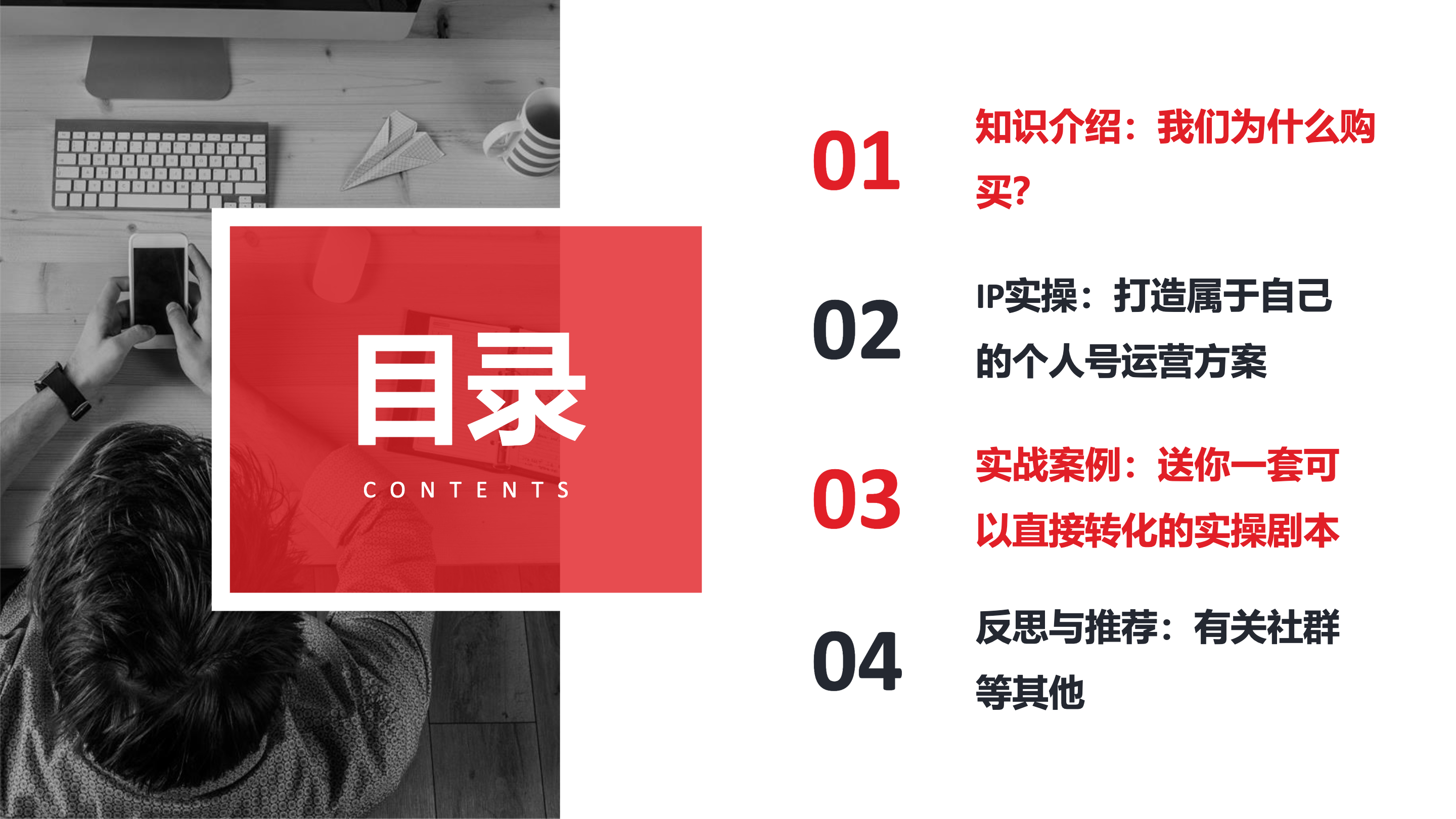 如何做好个人号的IP打造和转化?本报告分享: 1.我们为什么愿意购买? 2.IP实操:打造属于自己的个人号运营方案 3.实战案例:送你一套可以直接转化的实操剧本 4.反思与推荐:有关社群等其他