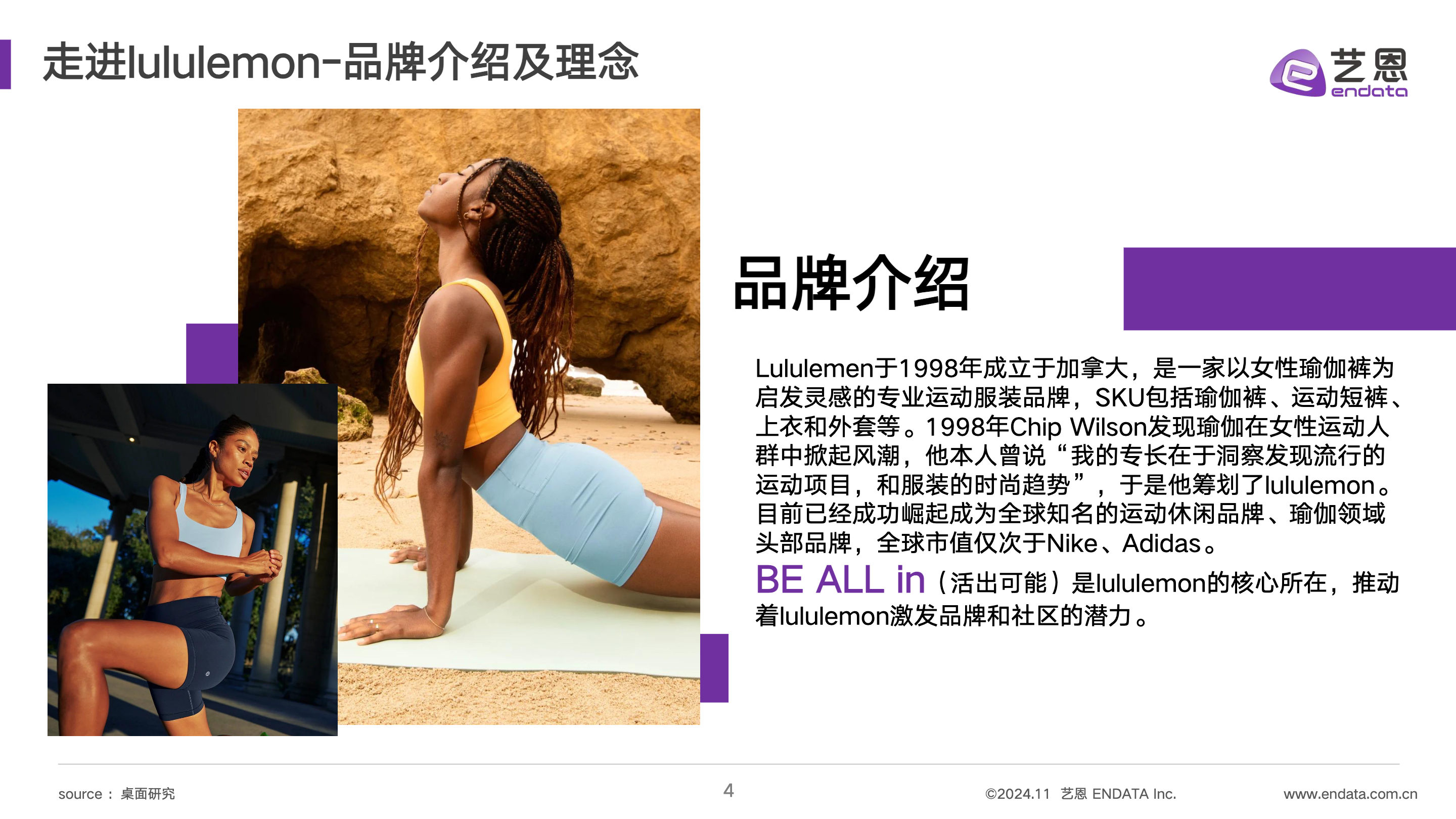 lululemon已经成功崛起成为全球知名的运动休闲品牌、瑜伽领域 头部品牌,全球市值仅次于Nike、Adidas。 BEALLin(活出可能)是lululemon的核心所在,推动着lululemon激发品牌和社区的潜力。 本报告从品牌及策略解读、品牌社媒表现研究、品牌营销玩法拆解3方面深度分析Lululemon品牌,希望能给你带来更多灵感和思考。