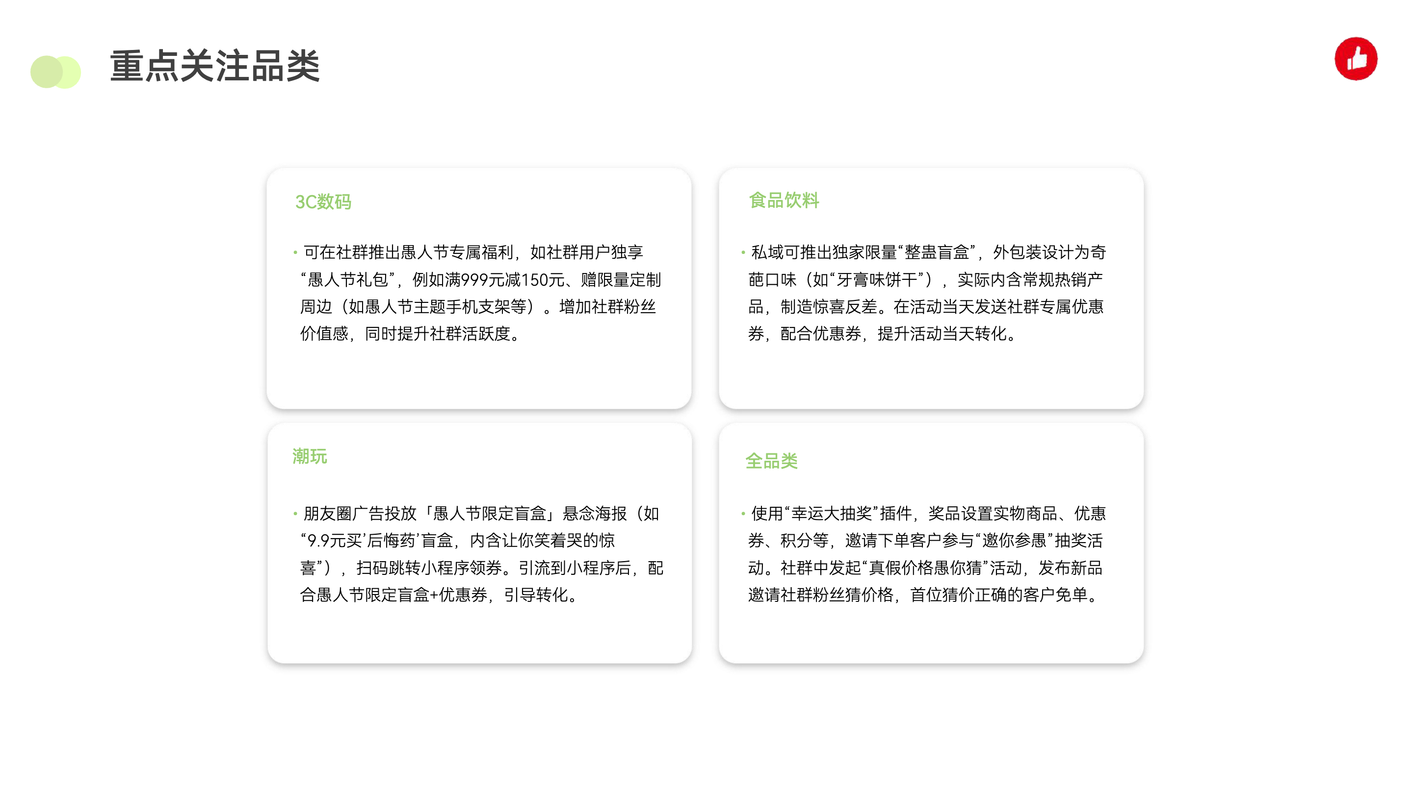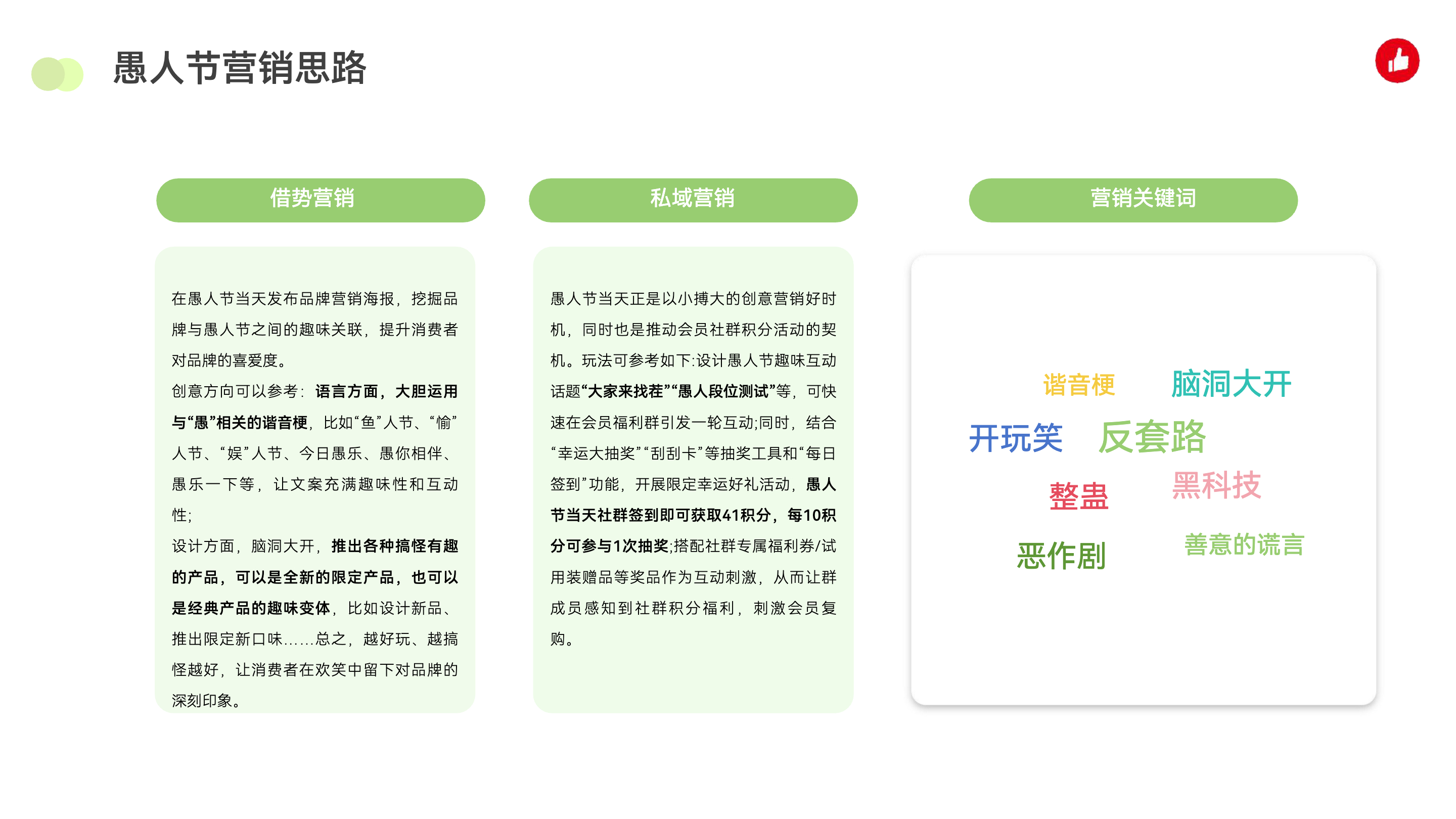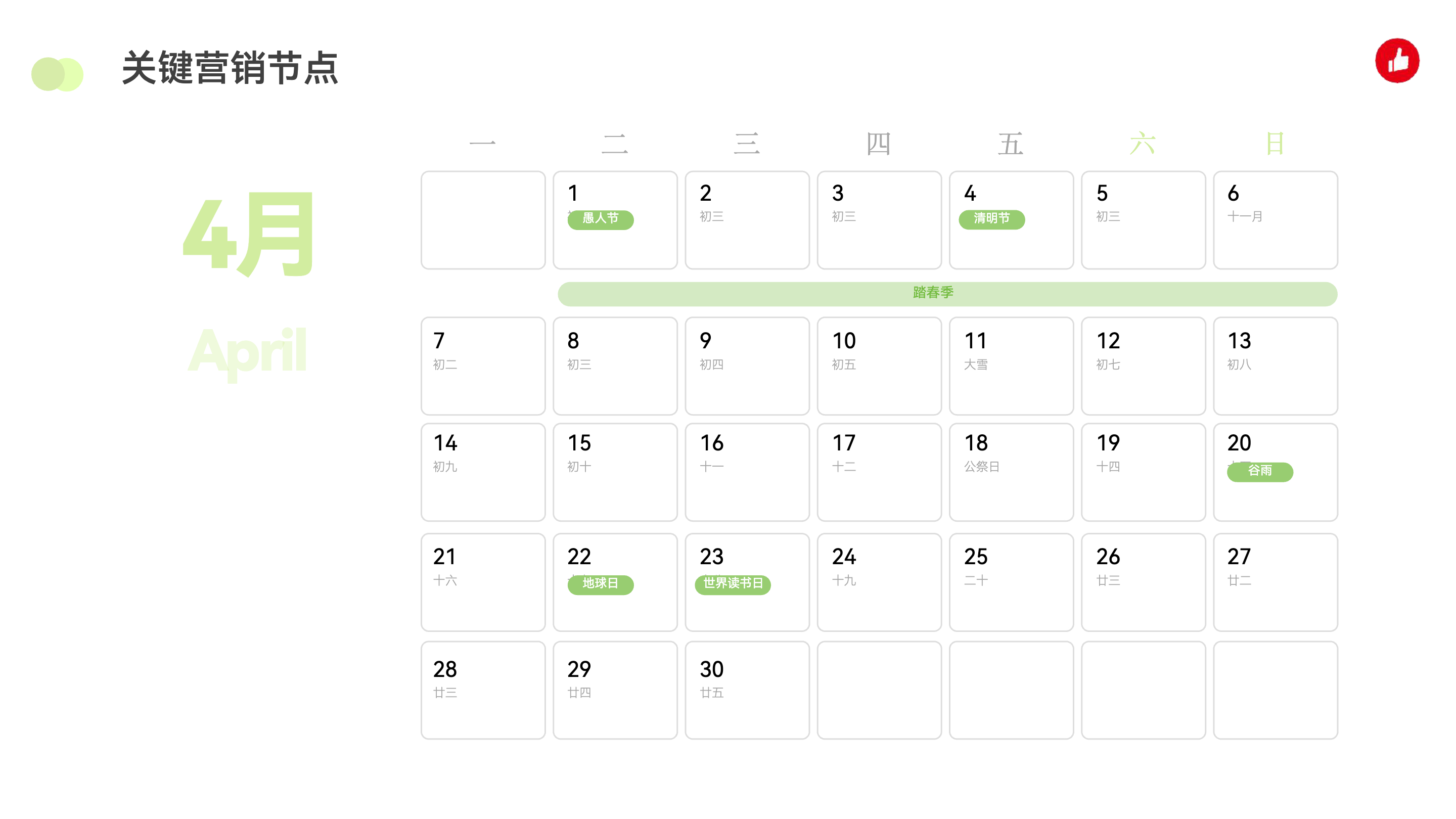 愚人节、踏春季、谷雨、地球日、世界读书日......为了助力品牌在4月营销节点中脱颖而出,我们准备了一份《4月营销资料包》,涵盖节点营销策略、创意海报设计、春季经营方案、精选案例拆解、行业经营洞察等干货内容,助您生意增长!