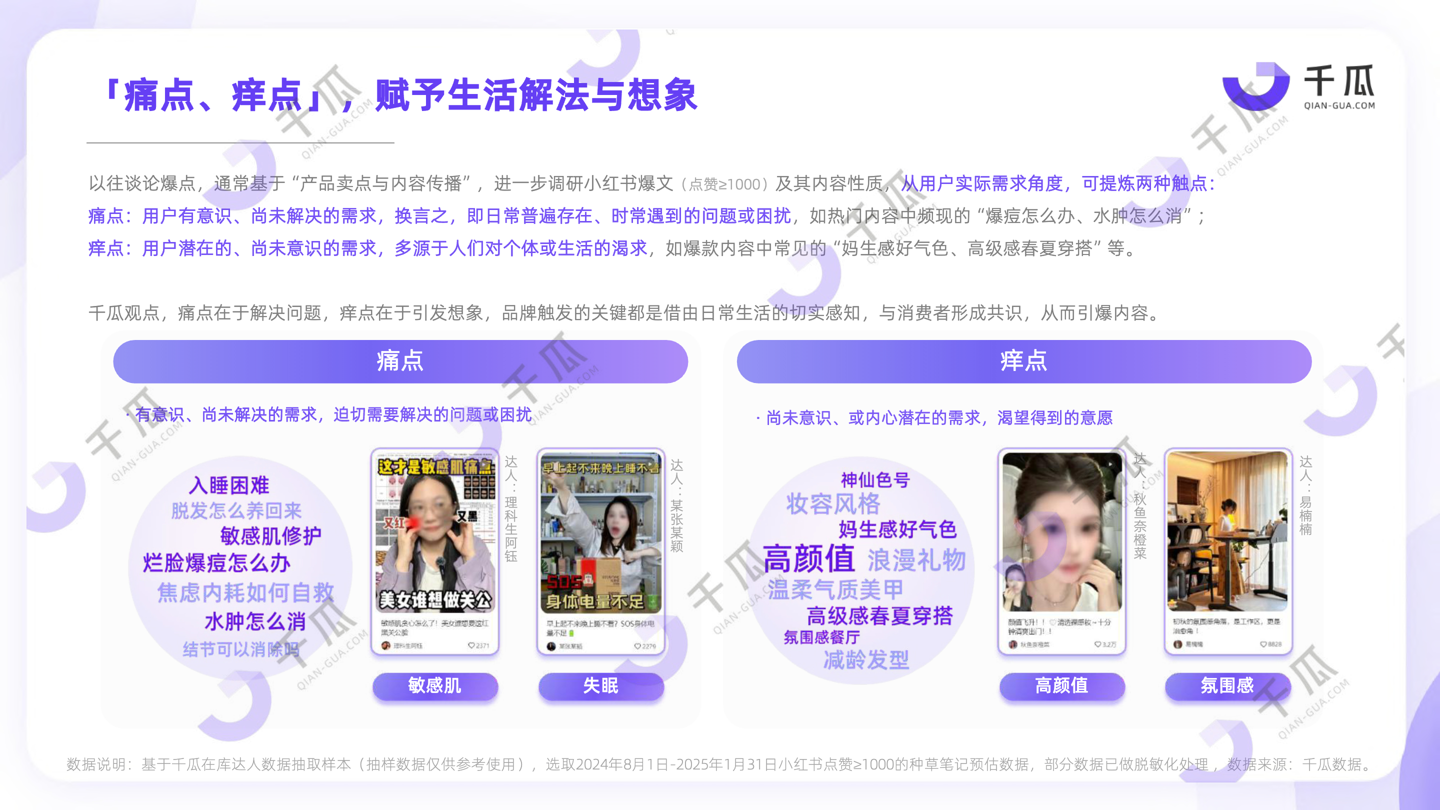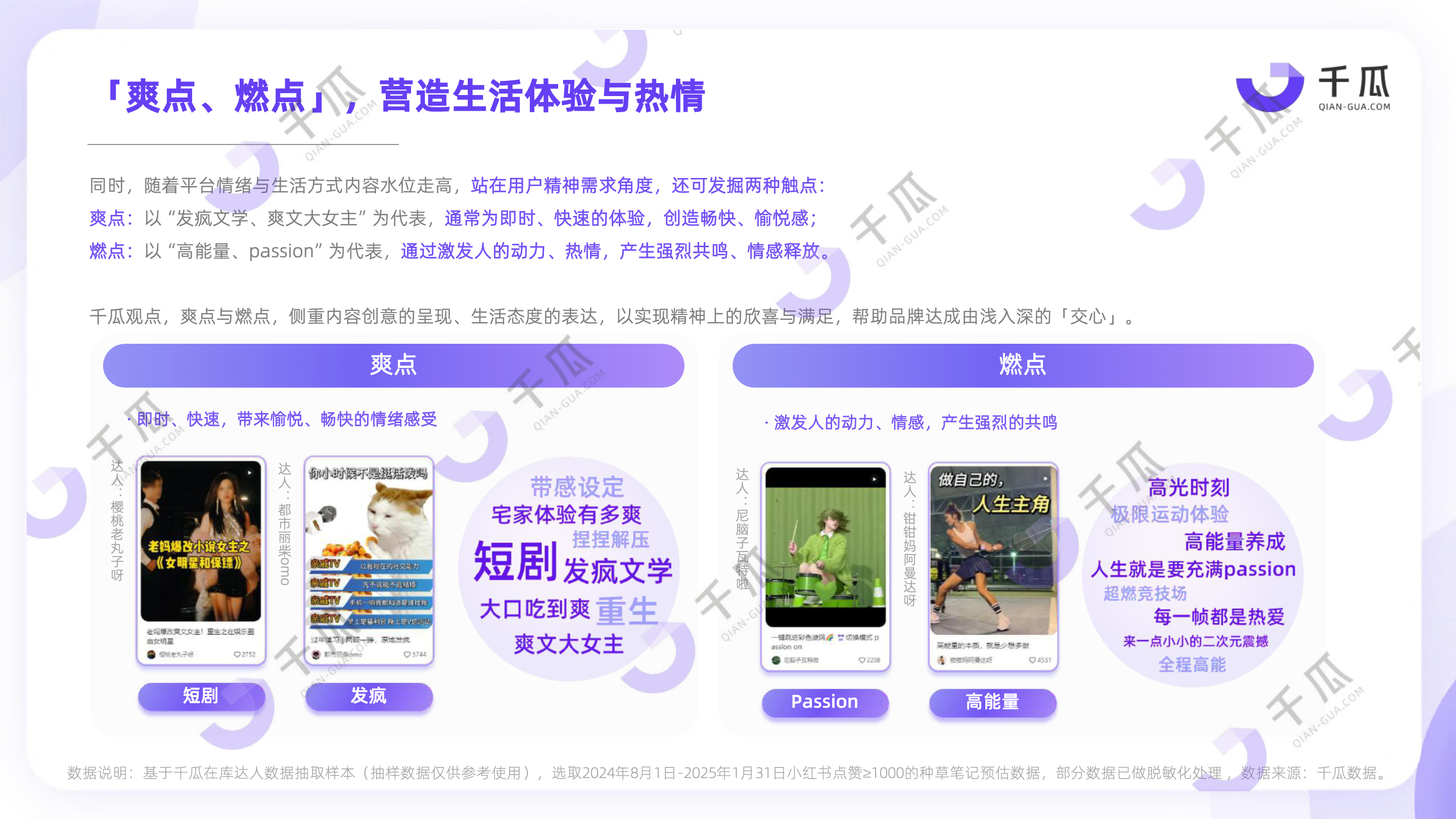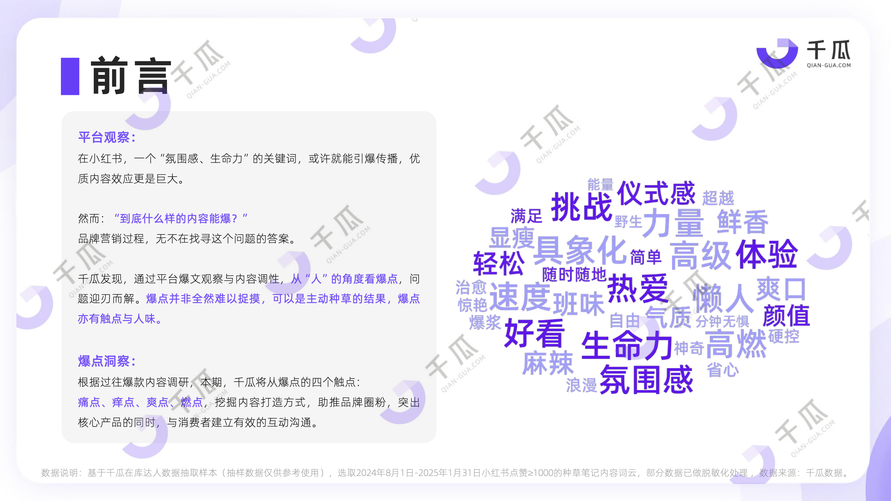 在小红书,一个“氛围感、生命力〞的关键词,或许就能引爆传播,优质内容效应更是巨大。 然而:“到底什么样的内容能爆?”品牌在营销过程,无不在找寻这个问题的答案。 根据过往爆款内容调研,本期报告将从爆点的四个触点:痛点、痒点、爽点、燃点,挖掘内容打造方式,助推品牌圈粉,突出核心产品的同时,与消费者建立有效的互动沟通。