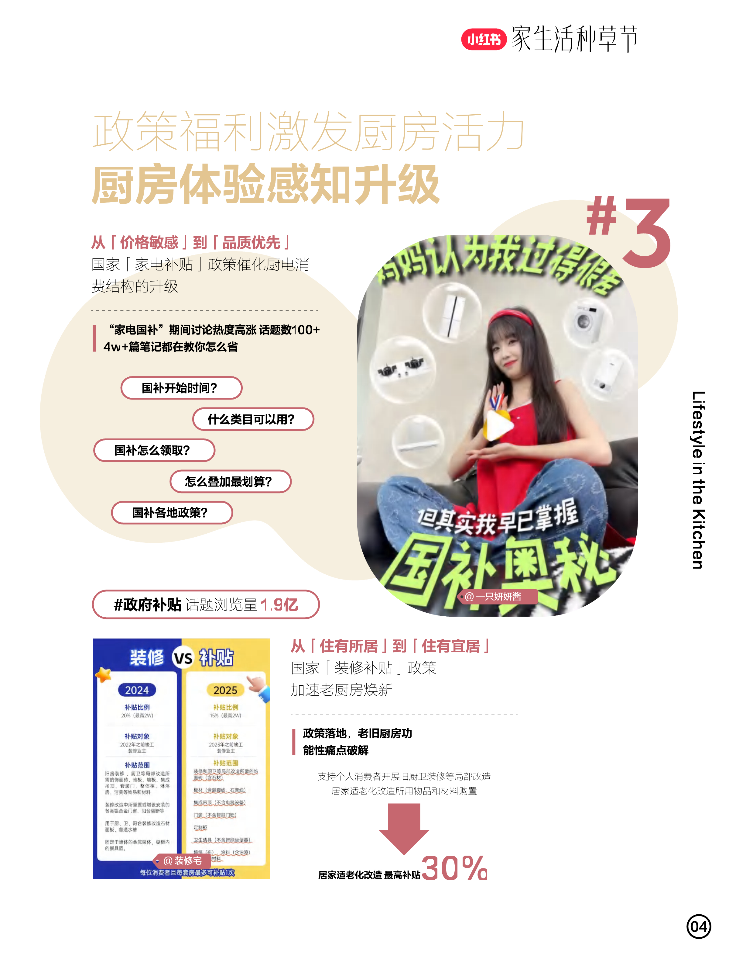 中国厨房高品质精进,在方寸折叠时代情绪: 1.社会变迁:重构厨房功能,厨房情绪价值升级 2.消费升级:驱动厨房焕新,厨房品质生活升级 3.政策福利:激发厨房活力,厨房体验感知升级 更多细节变化和趋势,查看完整报告获取~