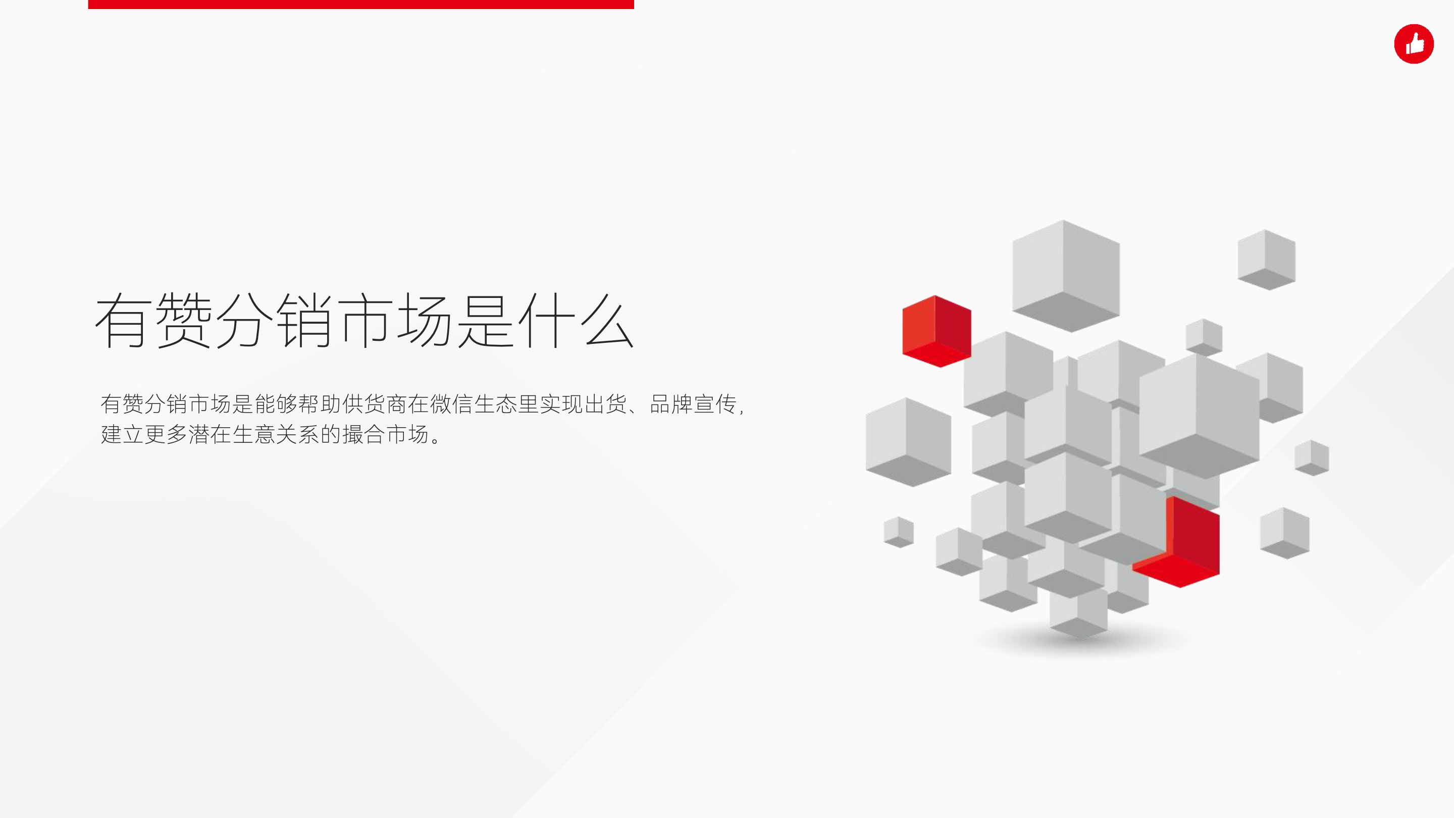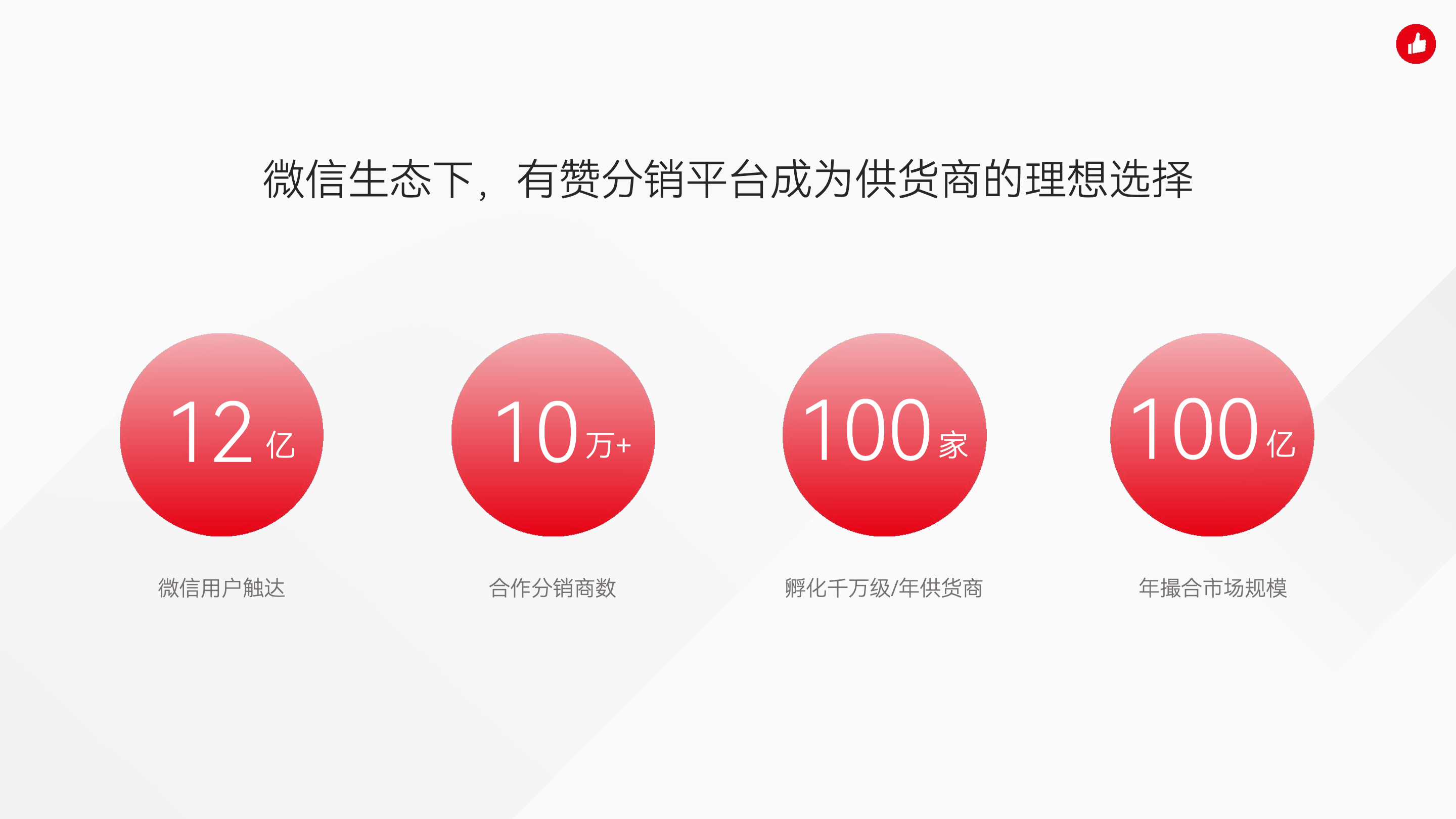 有赞分销市场是能够帮助供货商在微信生态里实现出货、品牌宣传,建立更多潜在生意关系的撮合市场。帮助商家布局私域、建立分销网络,在有赞分销平台打开产品销路。