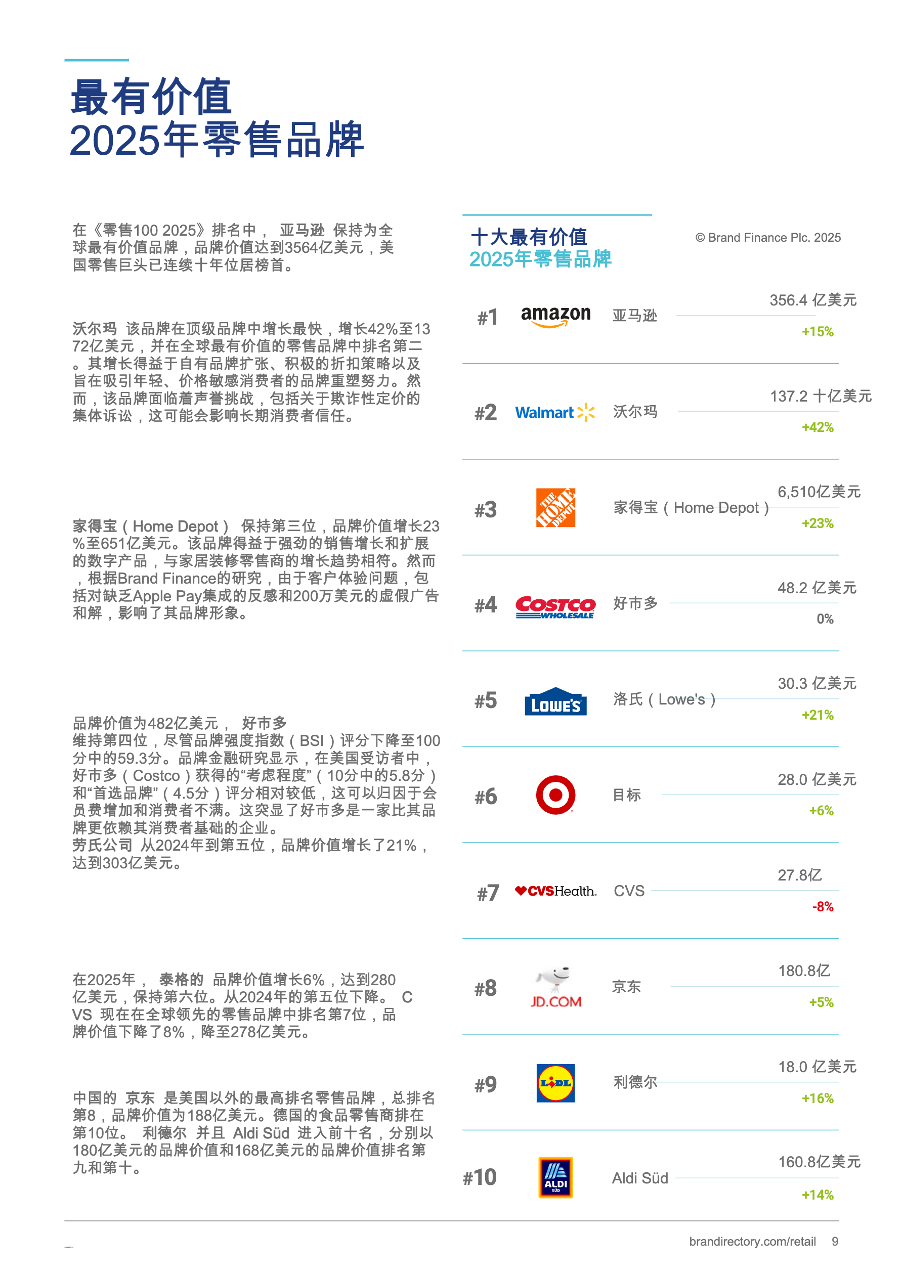 世界前100家最有价值的零售品牌的品牌价值总计上升了9%,达到13万亿美元,显示出全球零售品牌普遍增长。看看这些优秀的零售品牌,希望能给商家带来经营灵感。