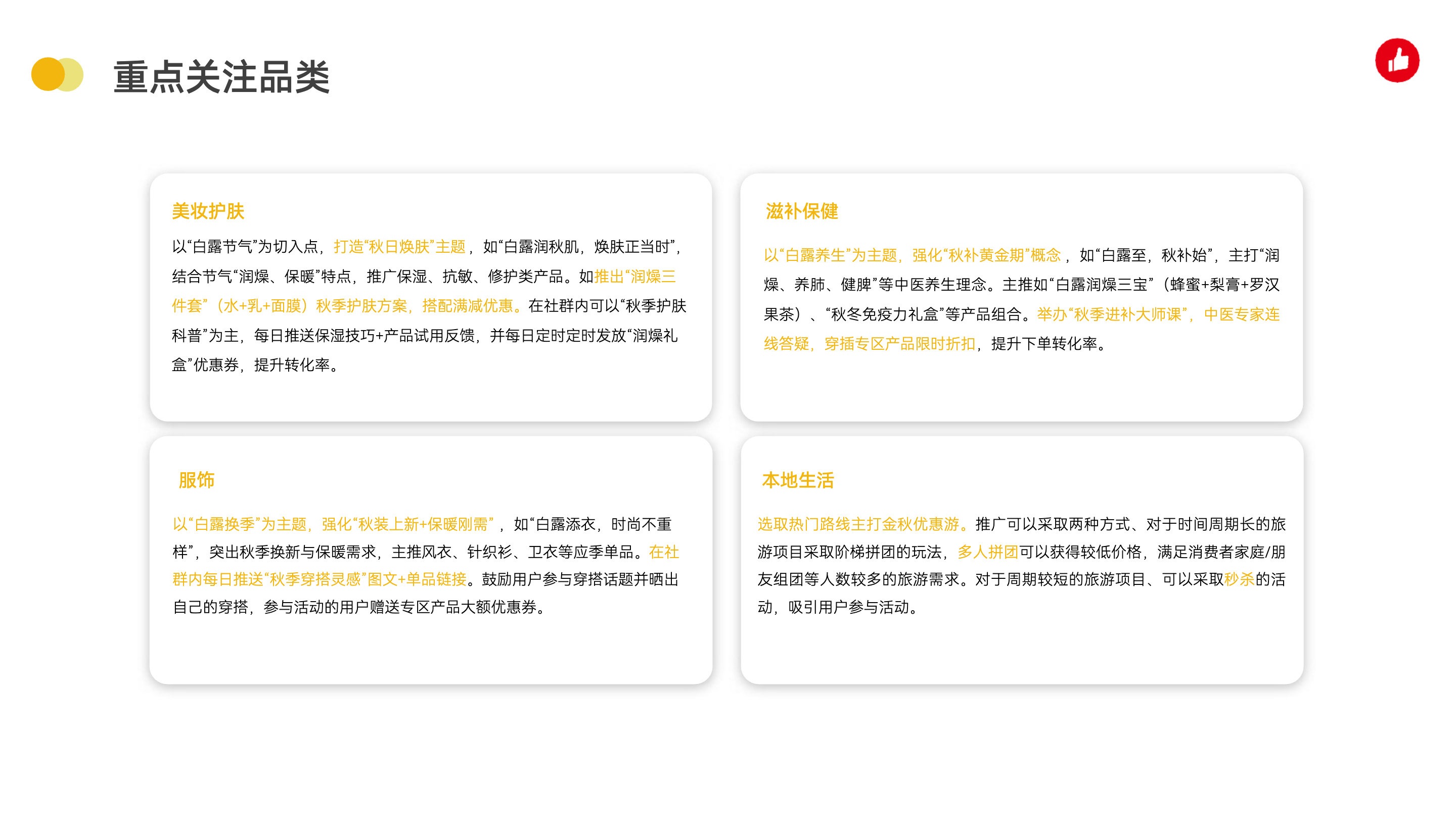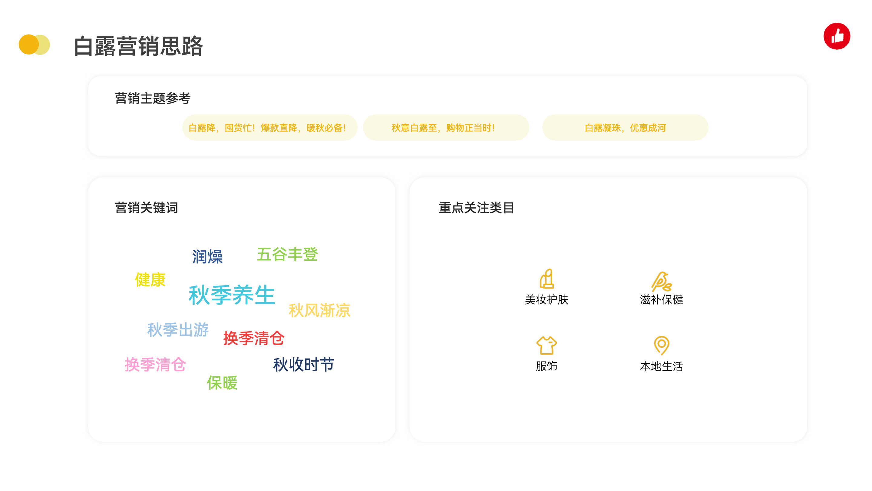 白露润燥、教师节感恩、爱牙日科普、秋分养生…你的9月营销弹药库已就位!🔥 ✅ 4大节点深度拆解(含借势海报和案例灵感库) ✅ 有赞精选案例:可直接复制的运营经验 ✅ 重磅趋势报告:女装/滋补保健/运动户外/母婴等10+份最新洞察
