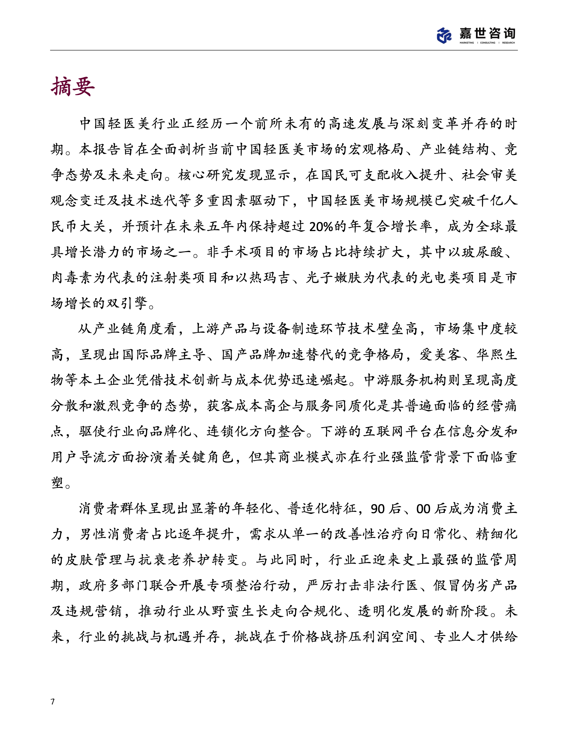 轻医美消费者群体呈现出显著的年轻化、普适化特征,90 后、00 后成为消费主力,男性消费者占比逐年提升,需求从单一的改善性治疗向日常化、精细化的皮肤管理与抗衰老养护转变。 与此同时,行业正迎来史上最强的监管周期,政府多部门联合开展专项整治行动,严厉打击非法行医、假冒伪劣产品及违规营销,推动行业从野蛮生长走向合规化、透明化发展的新阶段。