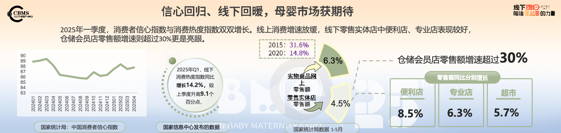 2025年一季度,消费者信心指数与消费热度指数双双增长。线上消费增速放缓,线下零售实体店中便利店、专业店表现较好, 仓储会员店零售额增速则超过30%更是亮眼。母婴市场也重获期待。 在行业红利后期,母婴企业该如何强化自身,实现生意增长呢?