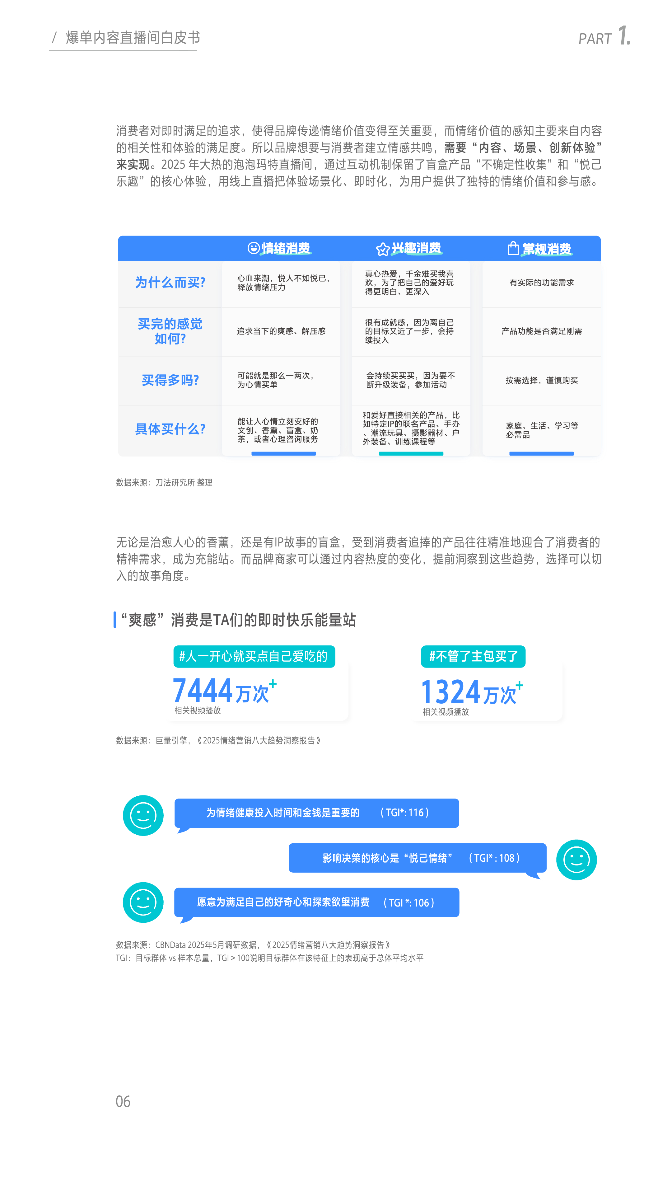 消费心智时代内容叙事成为品牌增长的新引擎,我们需要优化经营直播形式,着力打造「爆单内容直播间」。本报告系统性地总结并归纳了可供所有商家复制的「爆单内容直播间」方法论,为商家提供了具体的经营破局之道。 通过对七大「爆单内容直播间」范式的深度解析,我们希望为品牌提供一份从理论到实践的行动指南,将叙事能力转化为实实在在的生意增长,实现品牌价值与商业价值的双重提升。