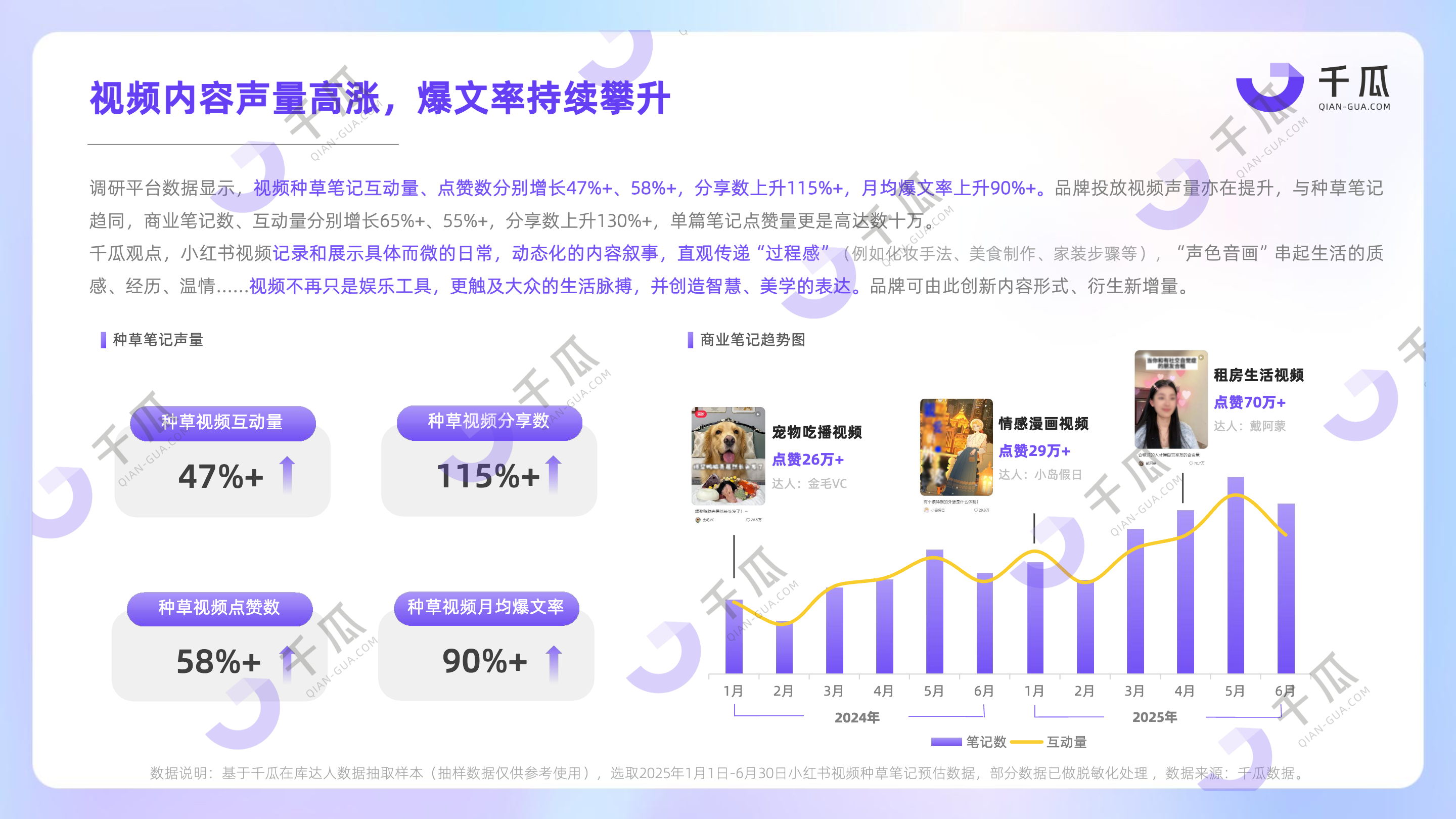 本报告通过调研小红书平台视频笔记,剖析热门行业表现、呈现形式、内容趋势,为品牌提供数据及种草参考,助力视频内容布局。