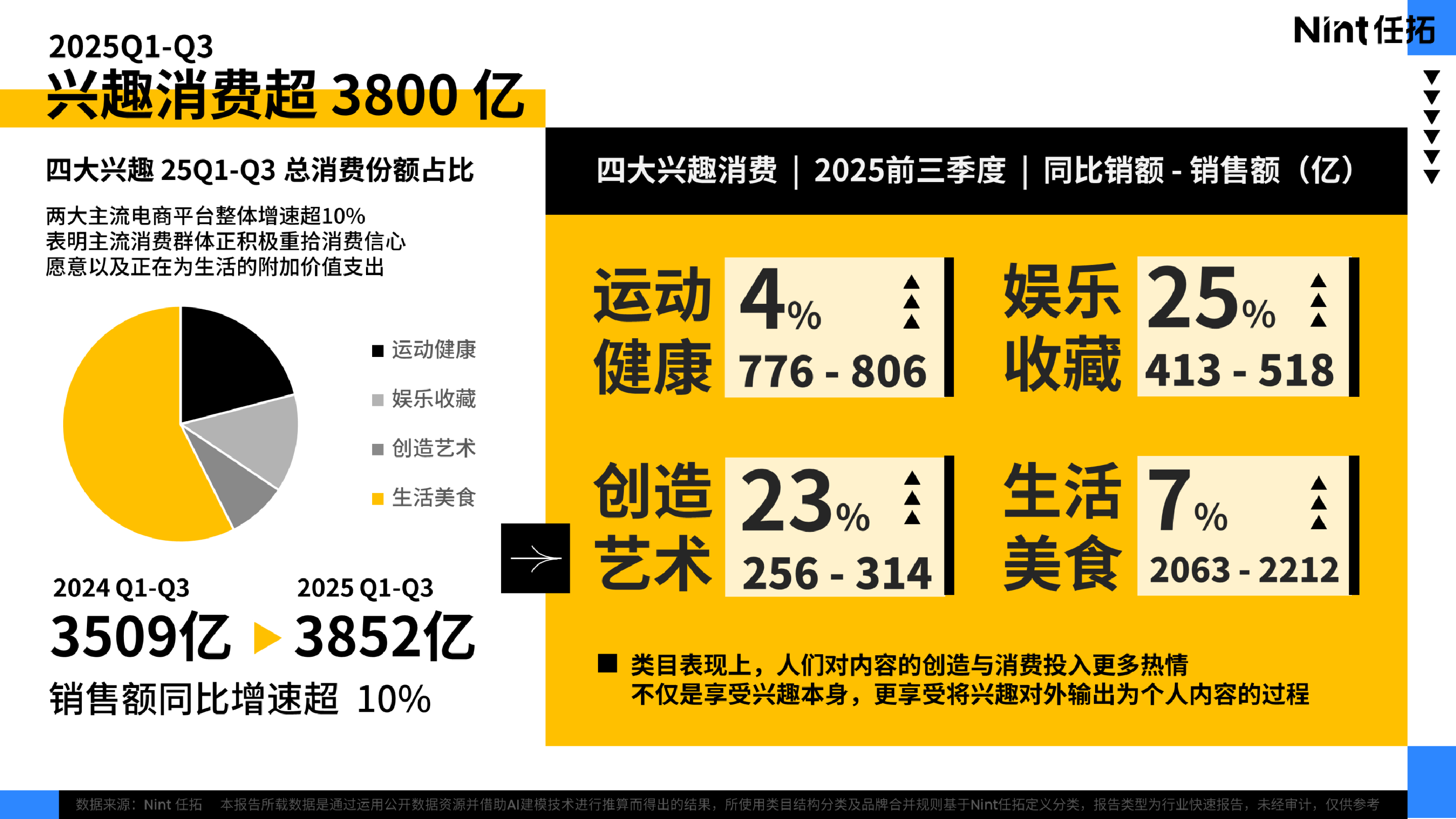 2025Q1-Q3兴趣消费超3800亿,两大主流电商平台整体消费增速超10%。说明主流消费群体正在积极重拾消费信心,愿意以及正在为生活的附加价值支出。 本报告将深度剖析四大兴趣消费,帮助商家朋友们更好的了解用户需求。