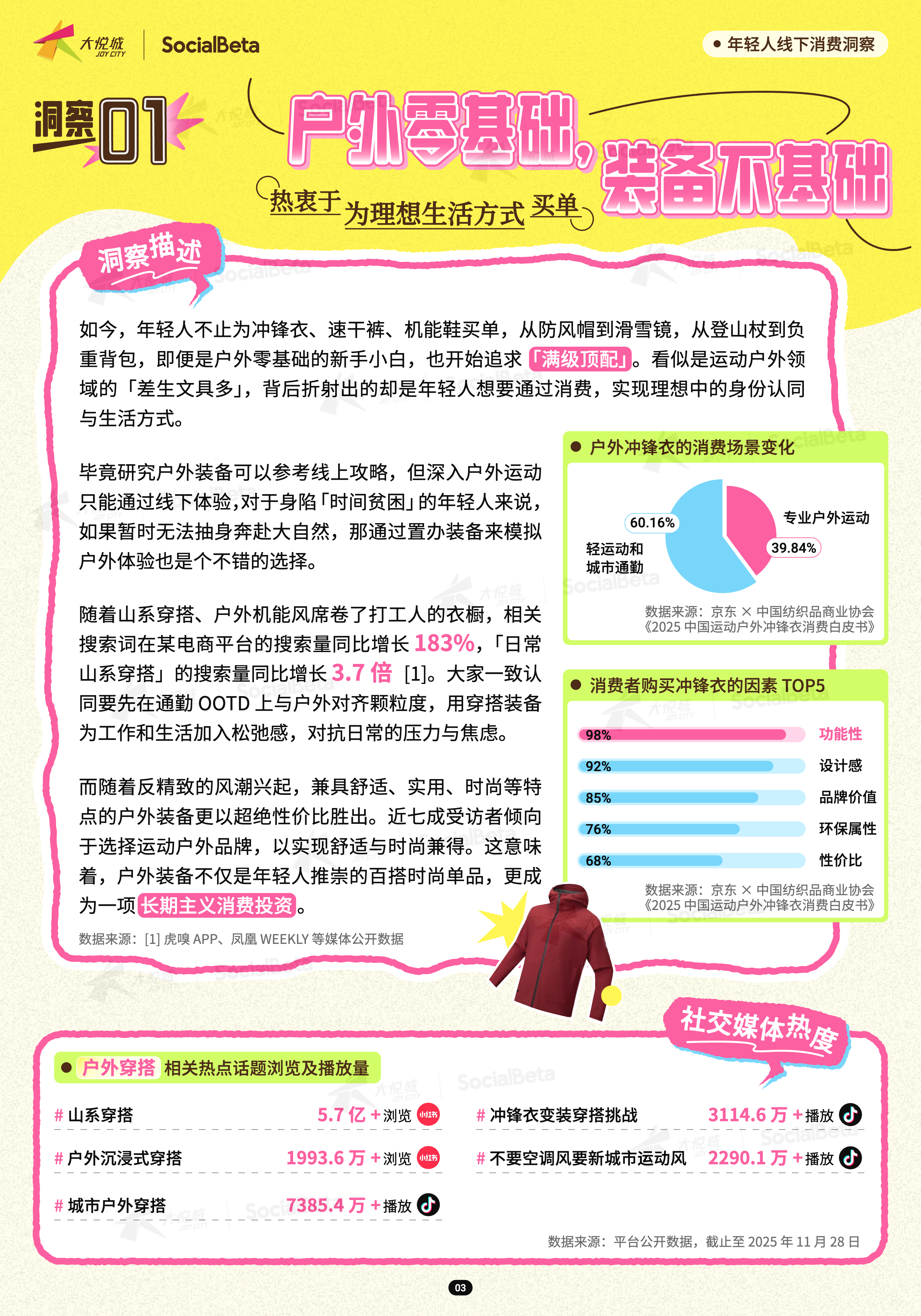 2025 年临近尾声,年轻人「重回线下」的热度仍在持续。相比起寄生数字世界信息过载带来的倦怠感,回归现充,正在帮助年轻人重建内心支点,感受生活的具体可触,也在真实体验中和品牌建立看得见、摸得着的联结。 因此,重新认识年轻人的线下消费风向,也在某种程度上,为品牌找到对话新一代消费者的理想方案提供了重要的参考刻度。