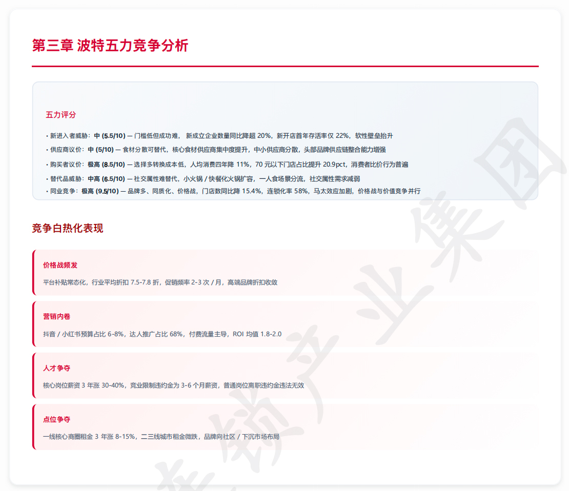 火锅行业竞争是全系统全链路较量,供应链、数字化、组织、品牌四维缺一不可。未来5年30-40%中小品牌将被淘汰,存活企业必须具备系统能力。