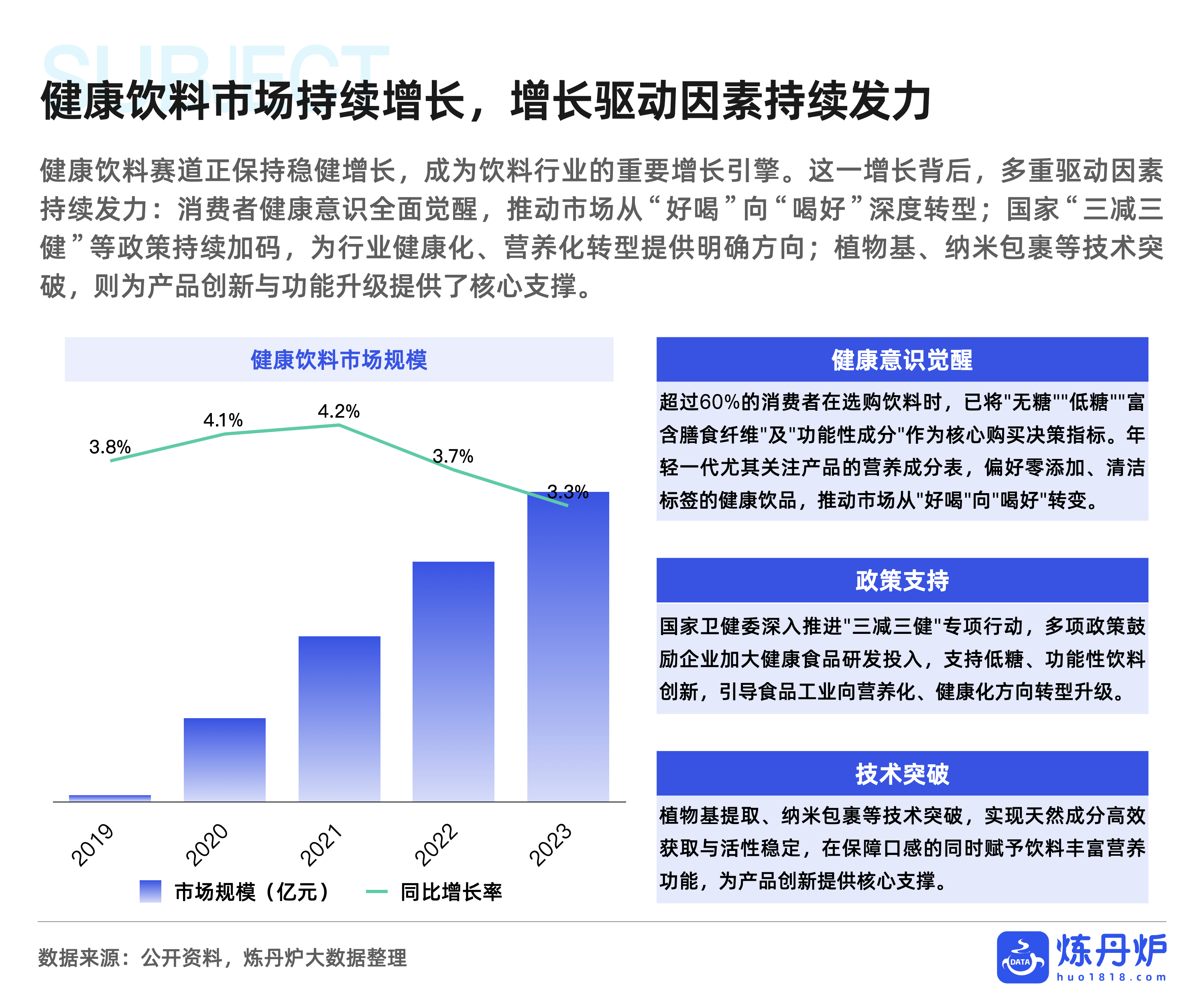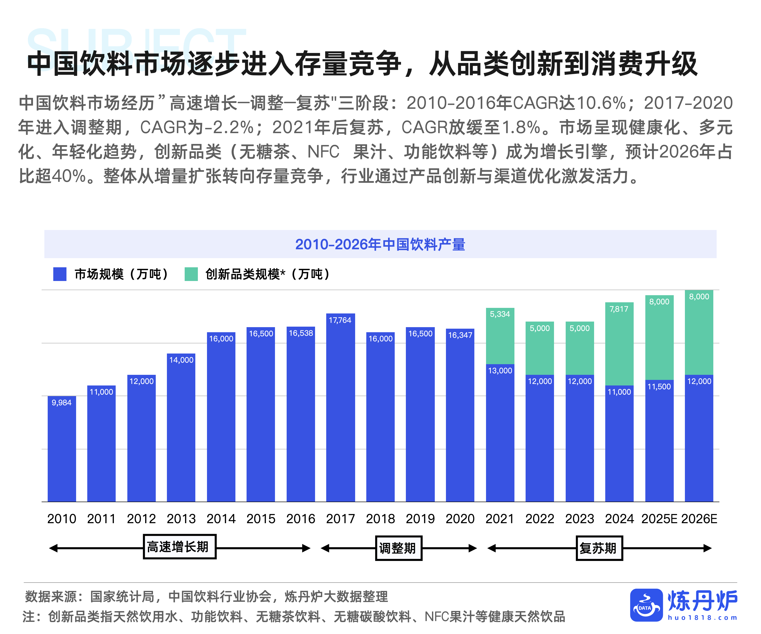 中国饮料市场逐步进入存量竞争,从品类创新到消费升级。其中健康饮料赛道正保持稳健增长,成为饮料行业的重要增长引擎。更多细节信息,查看完整报告获取更多信息~