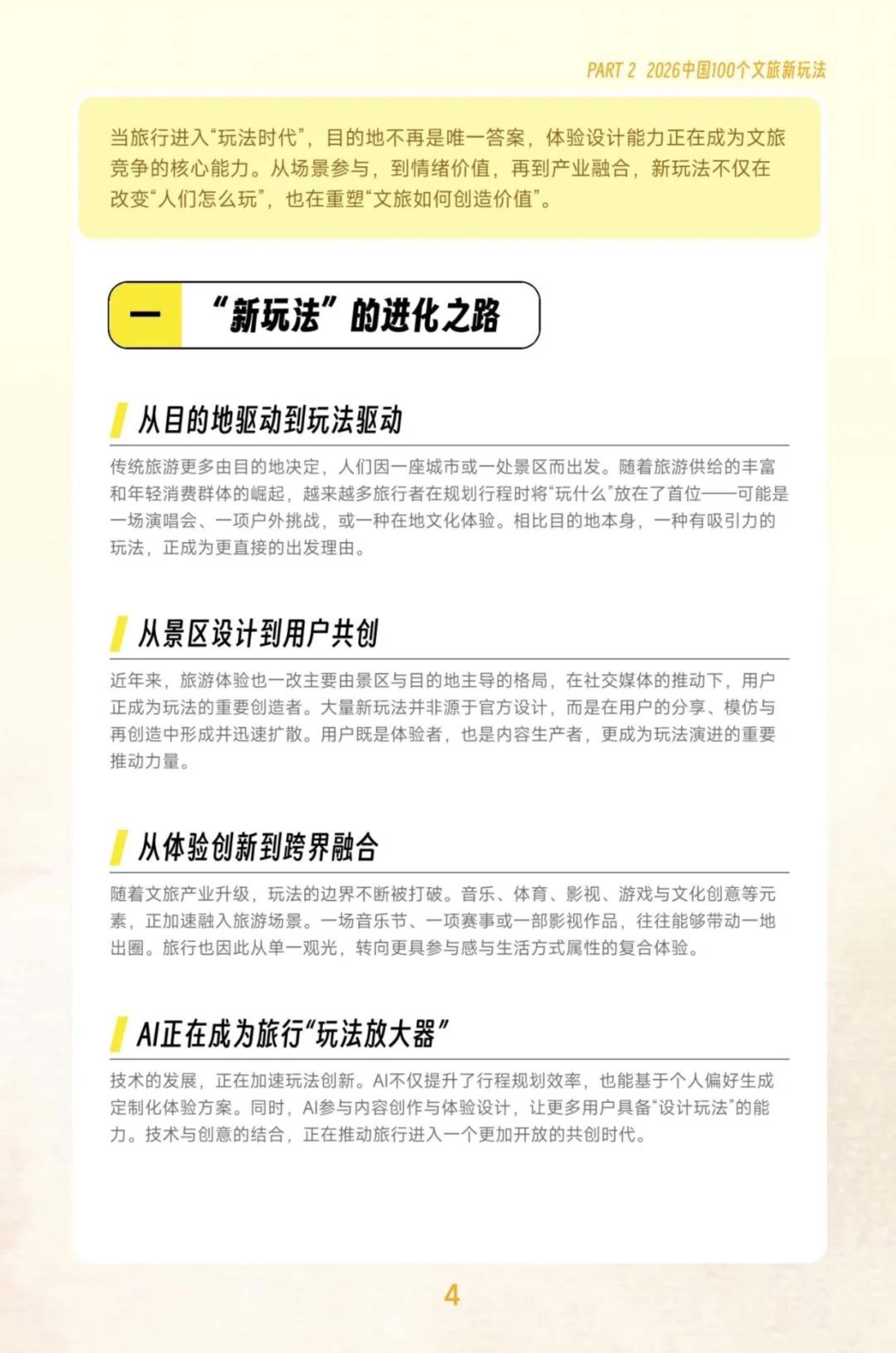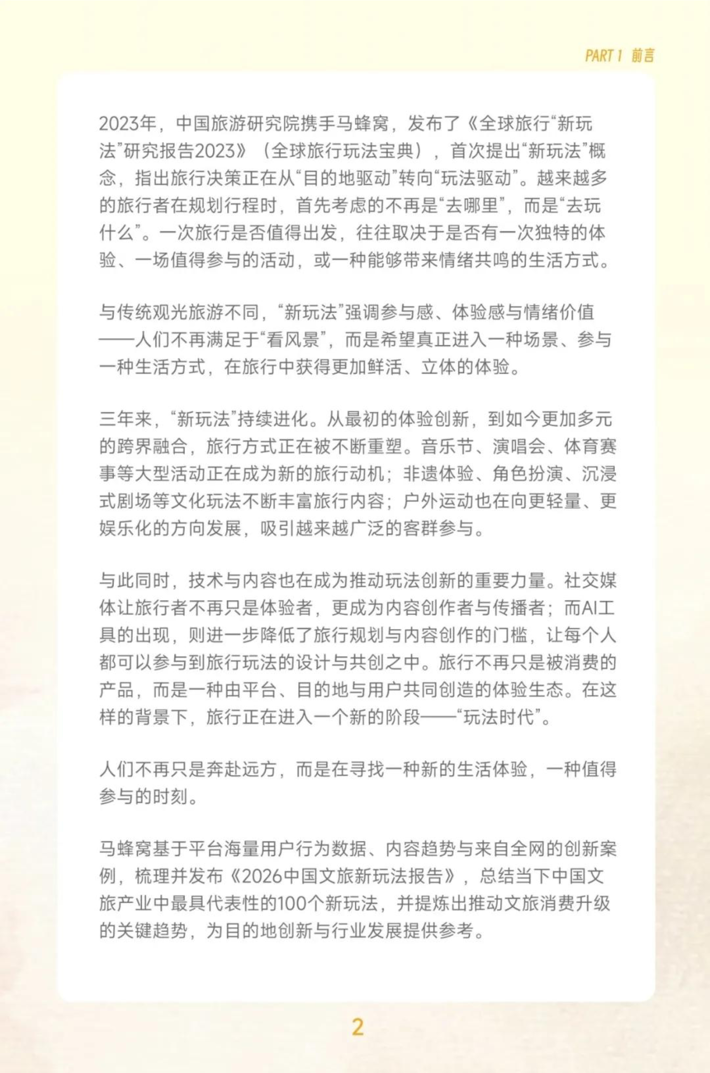 越来越多的旅行者在规划行程时,首先考虑的不再是“去哪里”,而是“去玩什么”。一次旅行是否值得出发,往往取决于是否有一次独特的体验、一场值得参与的活动,或一种能够带来情绪共鸣的生活方式。 与传统观光旅游不同,“新玩法”强调参与感、体验感与情绪价值 ,人们不再满足于“看风景”,而是希望真正进入一种场景、参与一种生活方式,在旅行中获得更加鲜活、立体的体验。