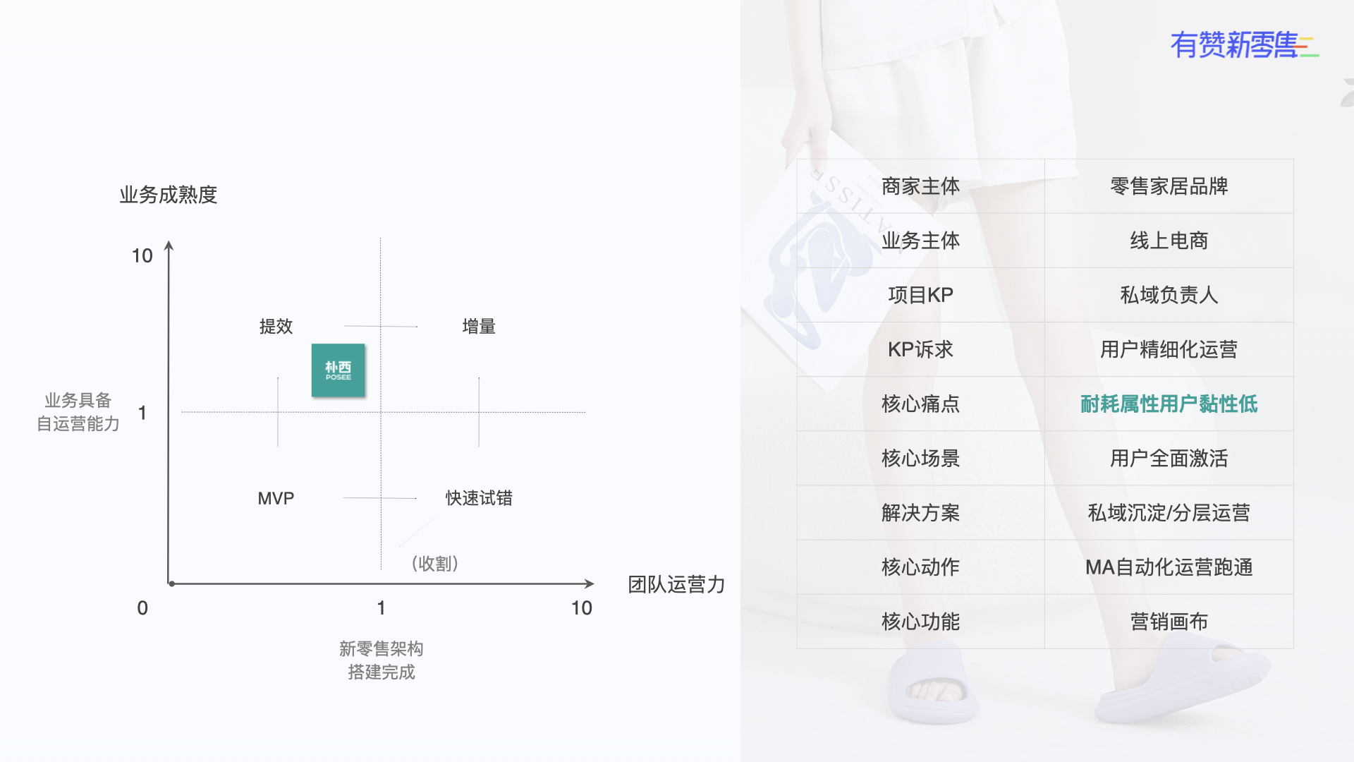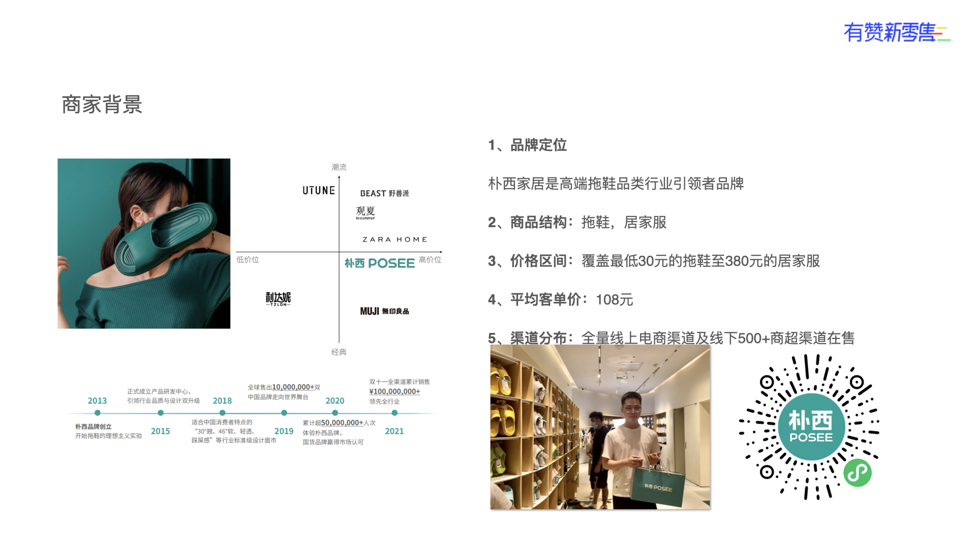 成立于 2013 年的朴西家居,专注深耕家居品类,其中仅拖鞋品类的年销售额就达到 3 亿,是当前国内拖鞋类目第一品牌。在拿下天猫、京东等渠道品类销量 TOP 1 的同时,朴西还远销海外,覆盖超 23 个国家地区。 从私域中挖掘更多增量,对用户进行精细化运营,有赞如何助⼒家居零售商家落地新零售? 1.对用户进行分群,打造内容和用户互动,同时利用有赞的营销画布,进行自动化销售; 2.在多个渠道投放营销内容,让品牌得到全方位、大规模的曝光,并将公域引来的流量沉淀至企业微信。 以 2022 年「618 大促月」和 9 月核心数据对比,会员数提高 52.33%,转化率提升 363.64%。更多案例细节可查看完整资料获取~