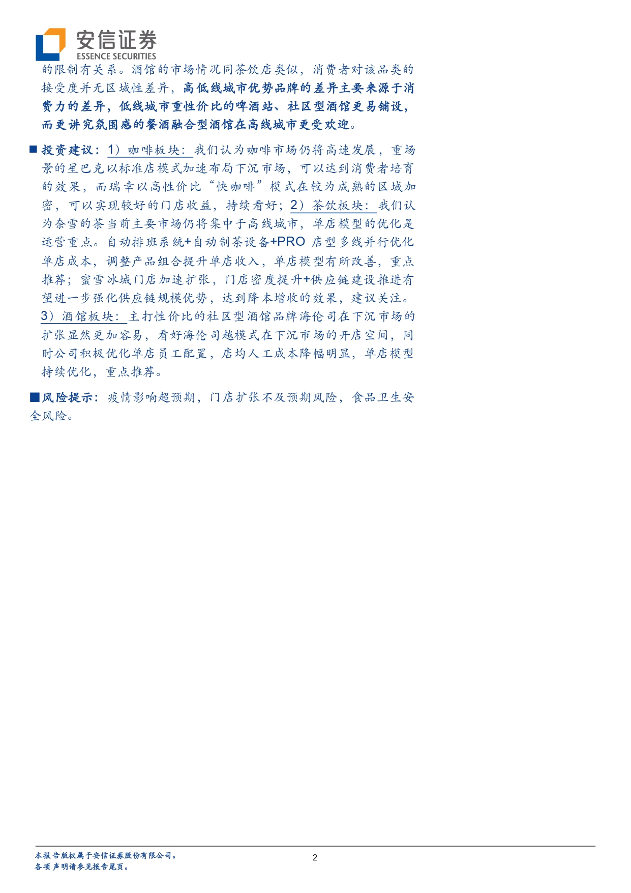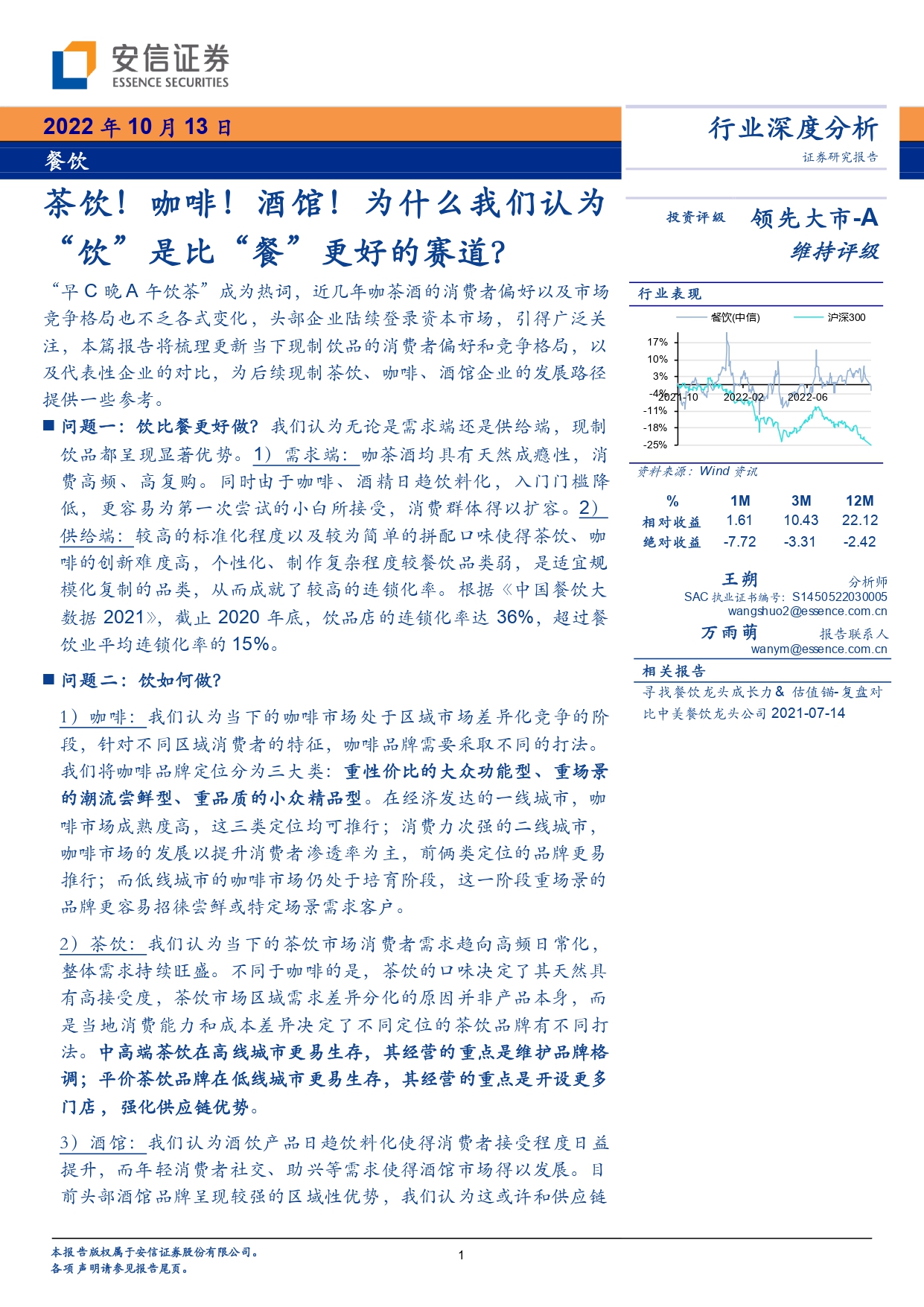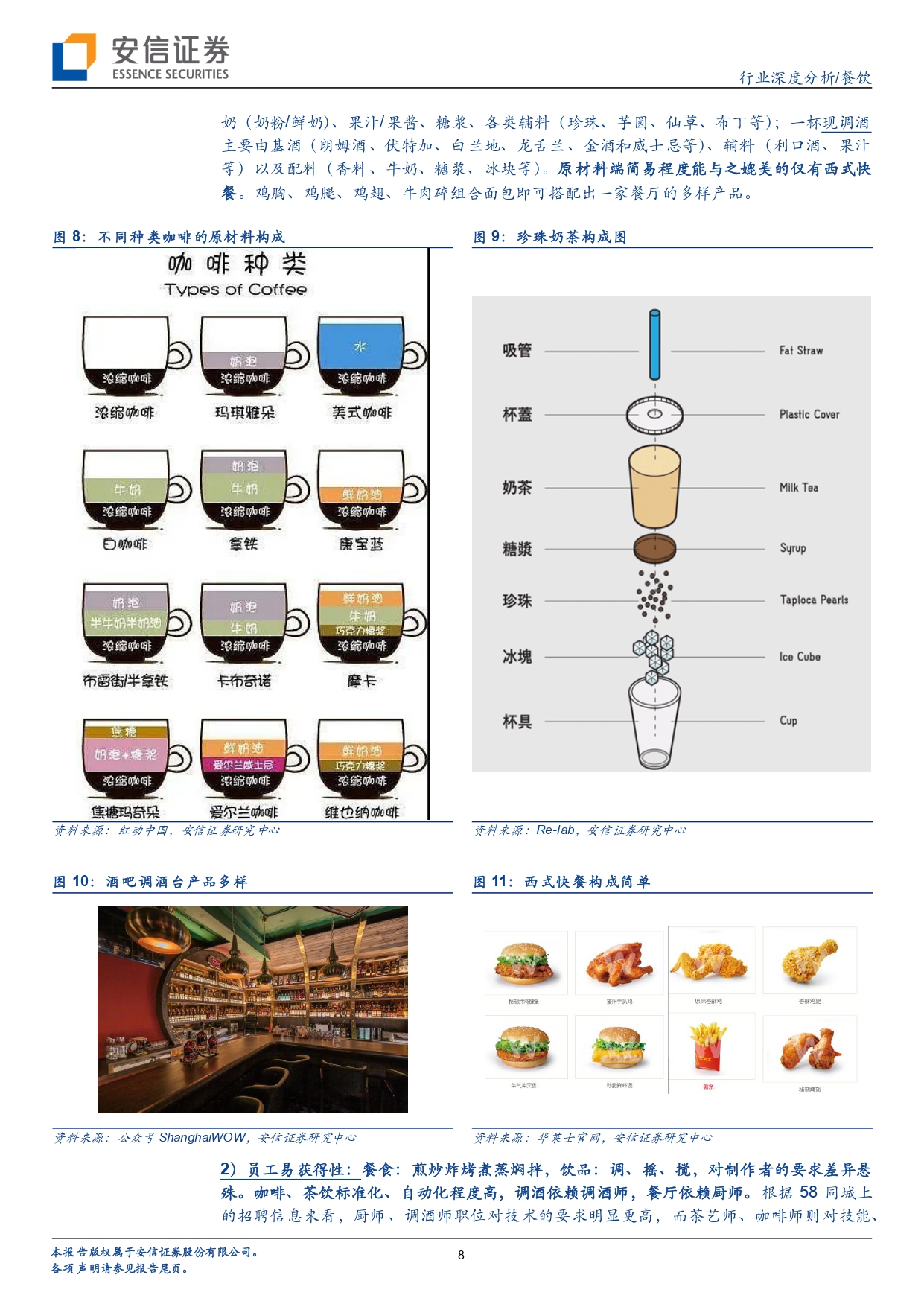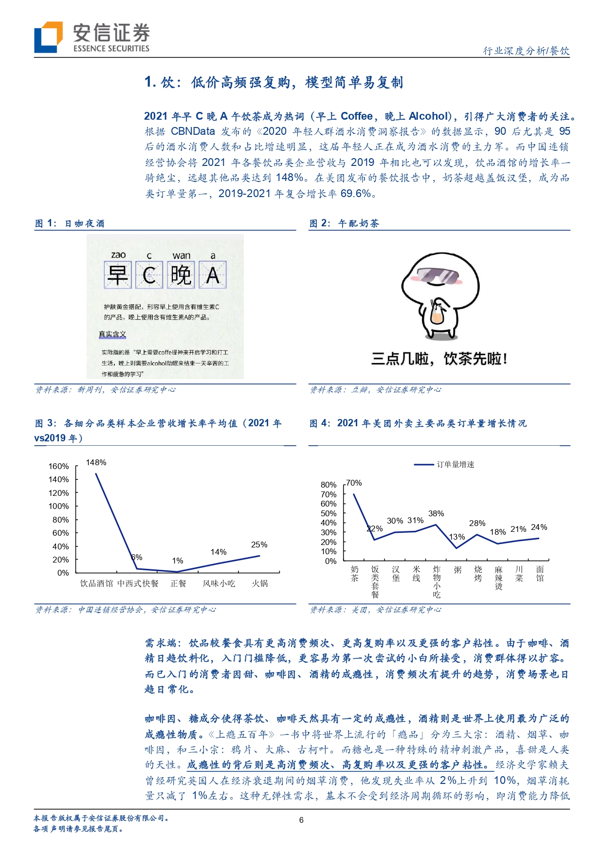 “早 C 晚 A 午饮茶”成为热词,近几年咖茶酒的消费者偏好以及市场竞争格局也不乏各式变化,头部企业陆续登录资本市场,引得广泛关注。 本篇报告将梳理更新当下现制饮品的消费者偏好和竞争格局,以及代表性企业的对比,为后续现制茶饮、咖啡、酒馆企业的发展路径提供一些参考。 问题一:“饮”比“餐”更好做?我们认为无论是需求端还是供给端,现制饮品都呈现显著优势。 问题二:“饮”如何做?咖啡、茶饮、酒水该怎么切入? 更多细节可查看完整报告获取~