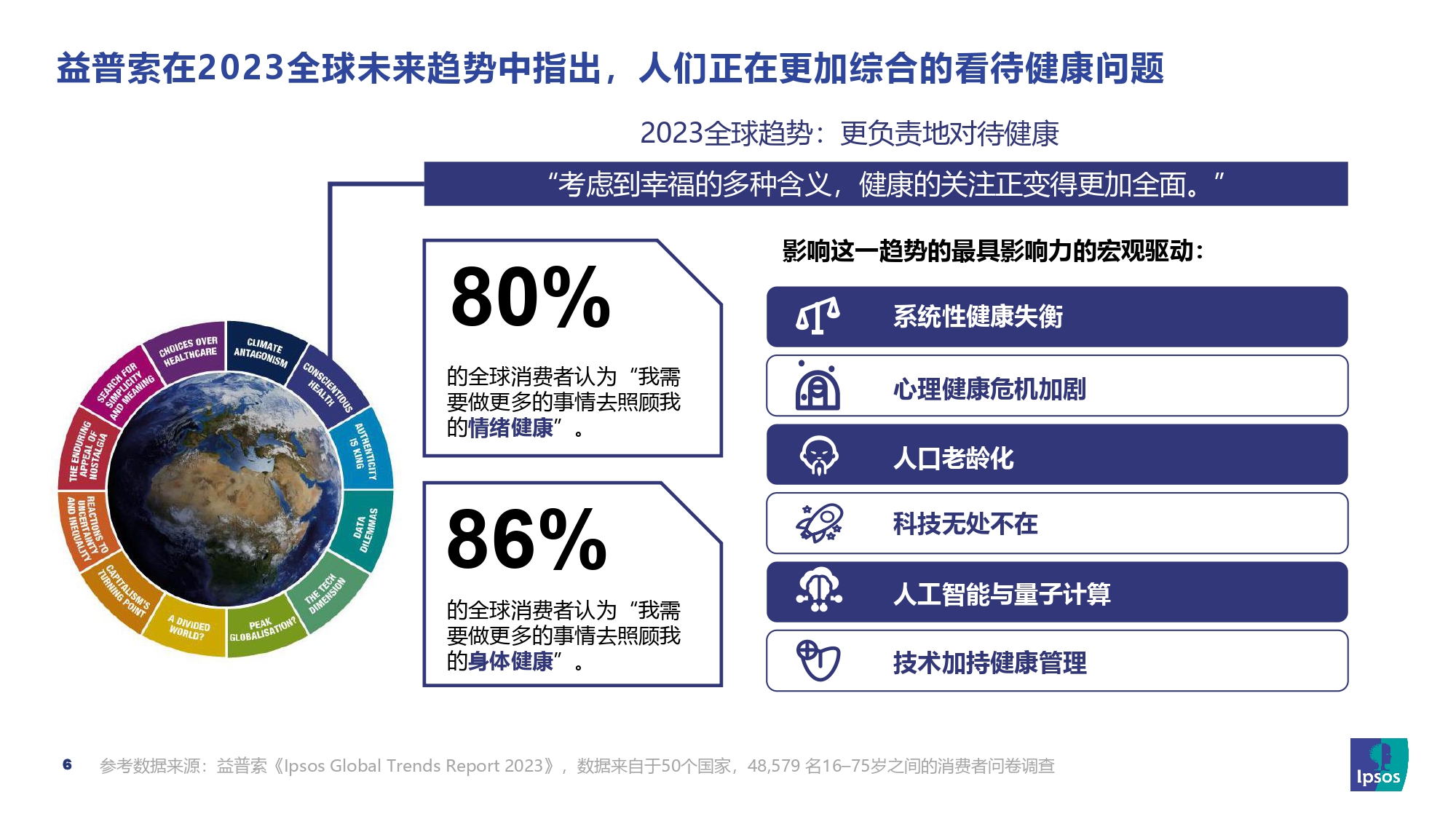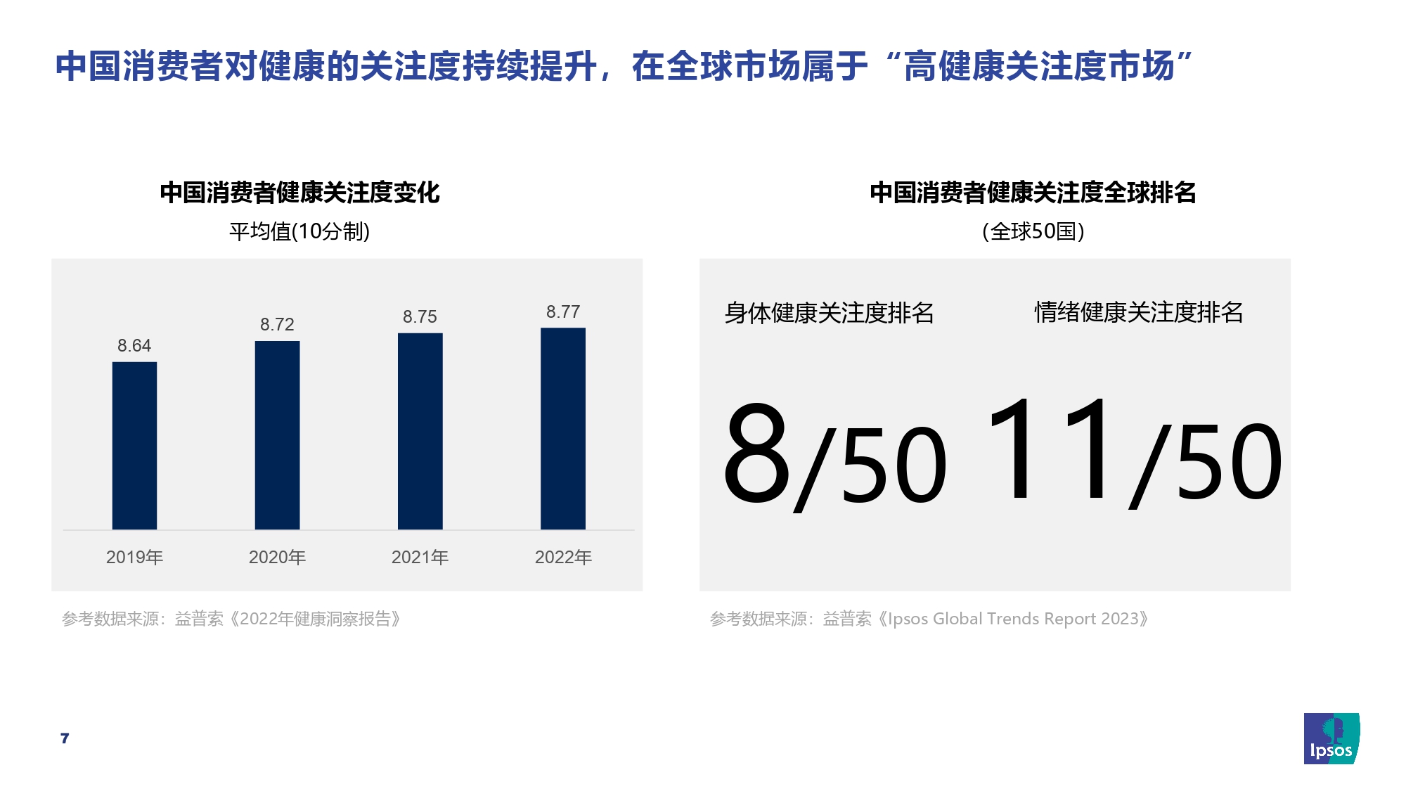 2023全球趋势:更负责地对待健康问题。 中国消费者对健康的关注度持续提升,在全球市场属于“高健康关注度市场”。 对健康的关注,来自于两大类群体:中老年群体、年轻人群体。 中国老龄化趋势明显,老年人健康消费增长迅速;从全球来看,年轻族群更加关注自己的情绪健康。 过去一年益生菌在社媒平台的声量不断增加,相关企业如何利用创新+人性洞察,获得更多的市场机会?查看完整报告获取更多信息~