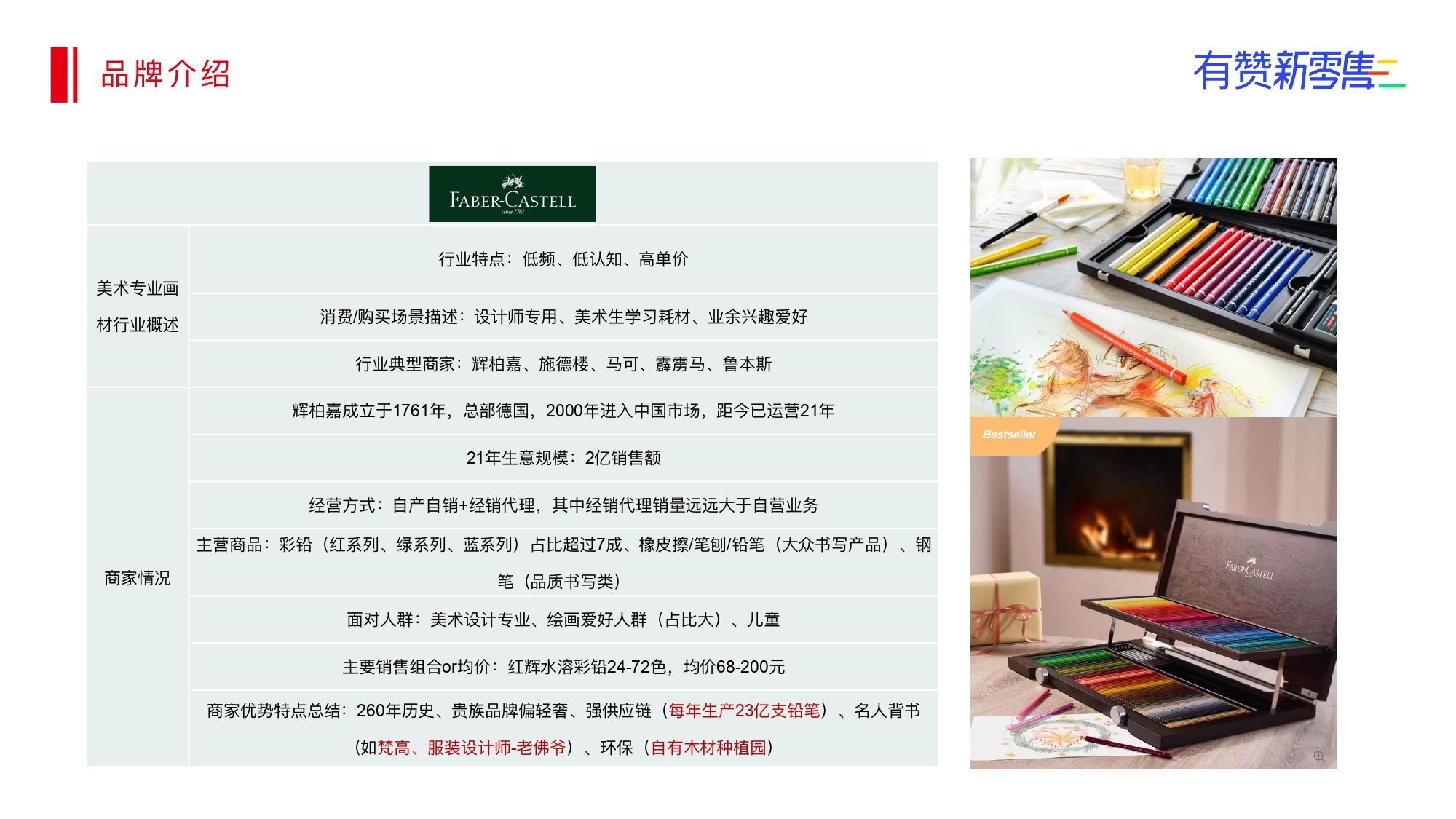 刚开始知道自己要陪跑辉柏嘉的时候,有赞新零售运营专家怪怪的心中飘来两个问号:文具? 文具怎么做私域? 抱着不懂就问的心态,多渠道收集品牌相关信息,甚至“潜入”辉柏嘉私域社群了解品牌用户。 后来得知辉柏嘉原来在专业美术领域颇有知名度,私域社群用户活跃度远高于我们的预判。 于是,对辉柏嘉的两个问号就变成了不明觉厉。 在这样的背景下,辉柏嘉想把私域做成什么样,怎么做呢?答案尽在下方的这份解决方案里。