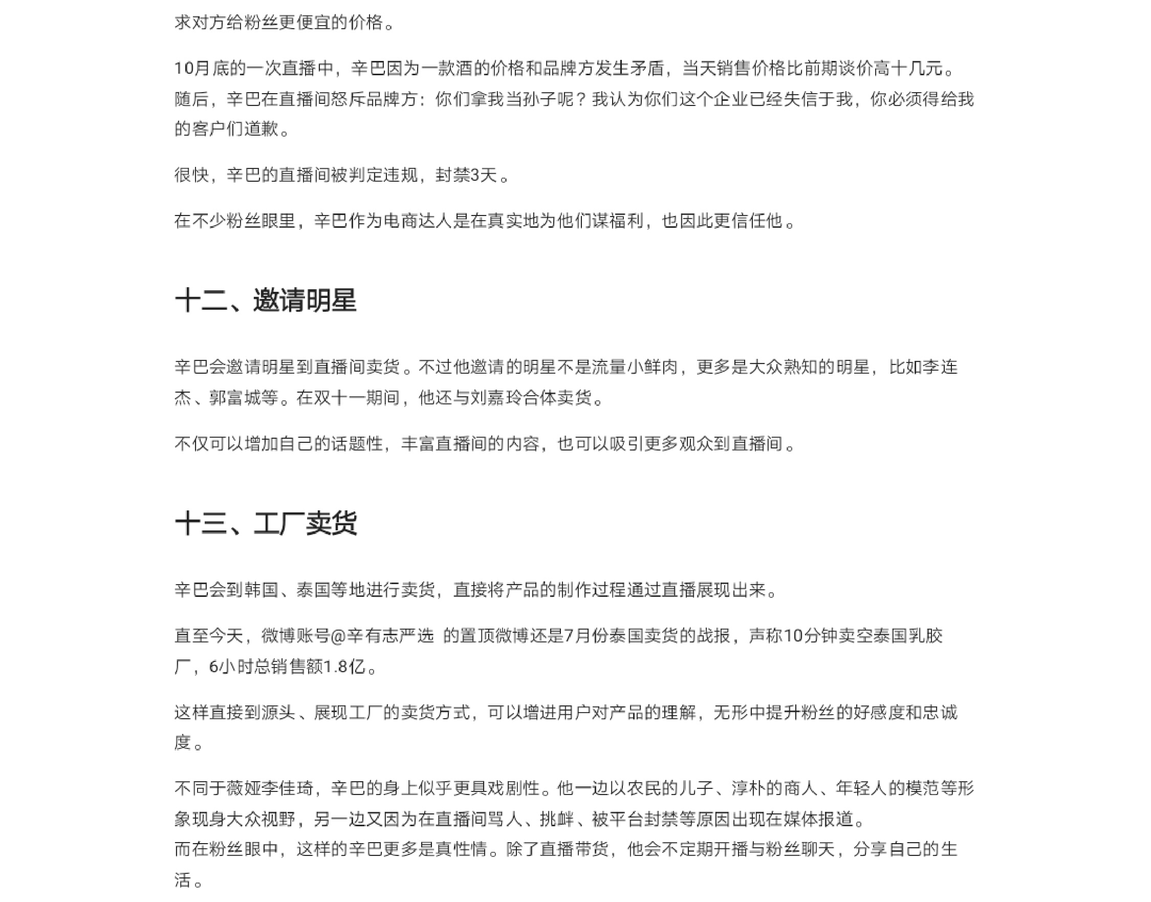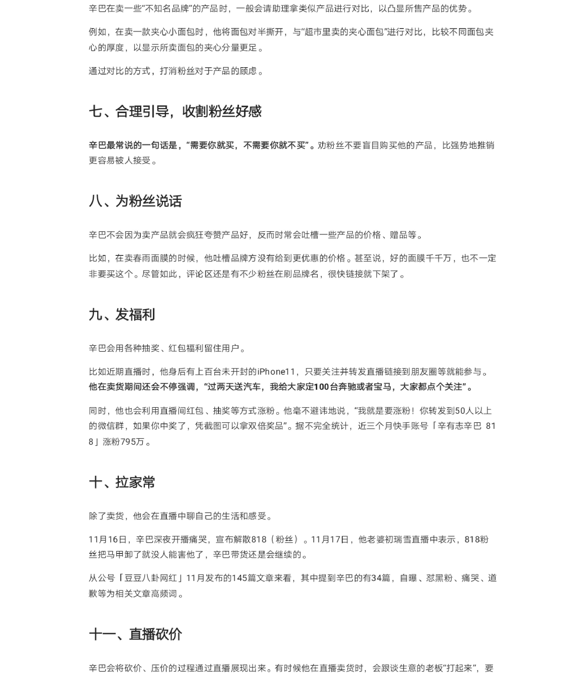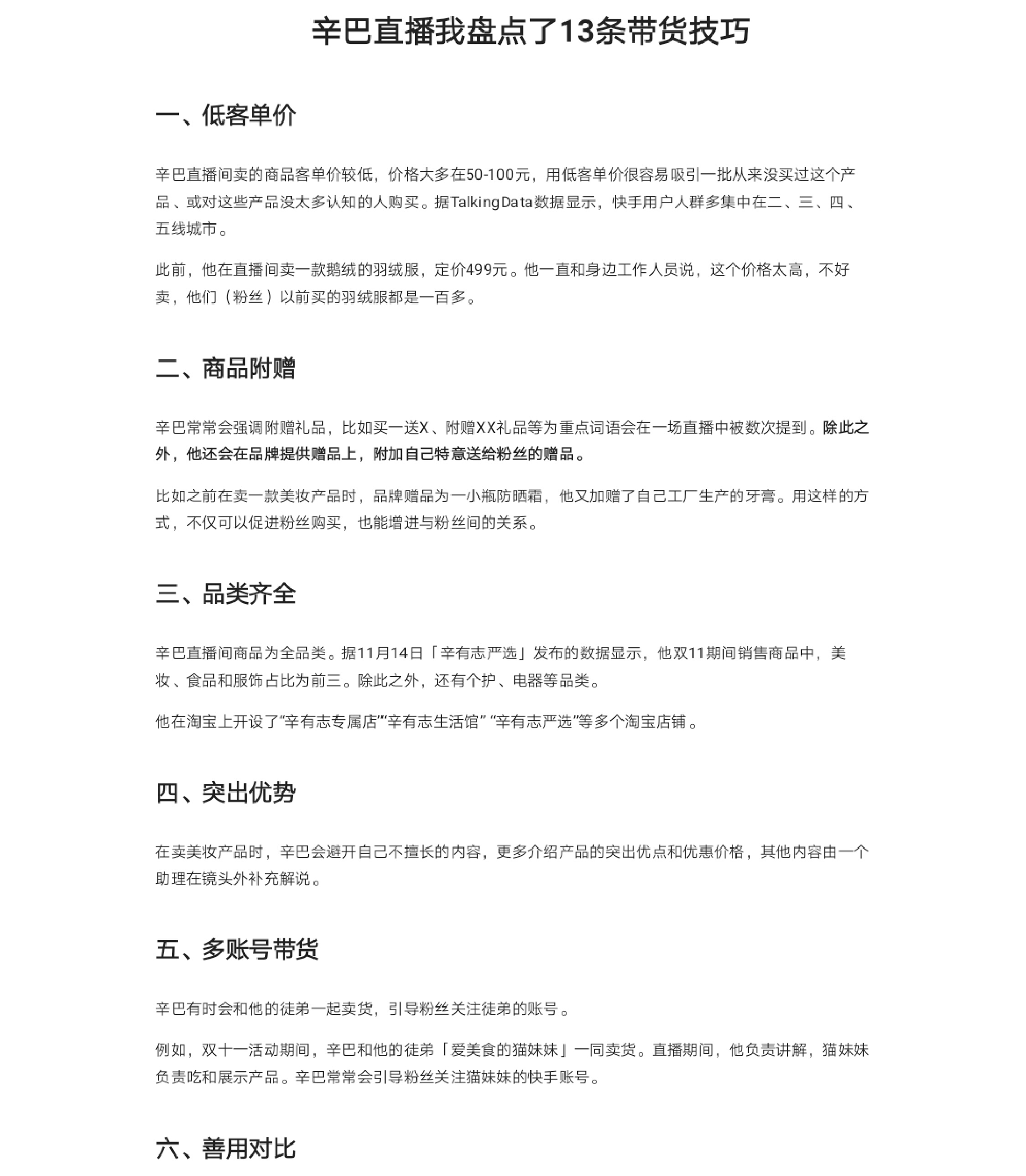 直播已是大势所趋,但是我们不难发现各大主播的带货能力都有所差异,好的主播之所以带货能力强是有逻辑可循的。 观察了辛巴的直播,我总结出了13条直播带货的技巧,希望能对有需要的商家有所帮助。