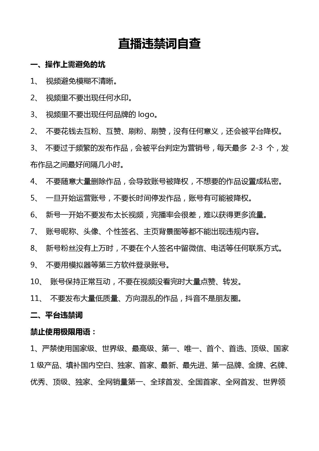 直播避坑指南,直播新人必备! 有哪些操作上需要避免的坑? 哪些极限词需要避免? 权威性、时限用语又有哪些是不能用的? 刺激消费、疑似医疗用语是哪些? 要想直播顺利进行,这份报告一定要收藏!