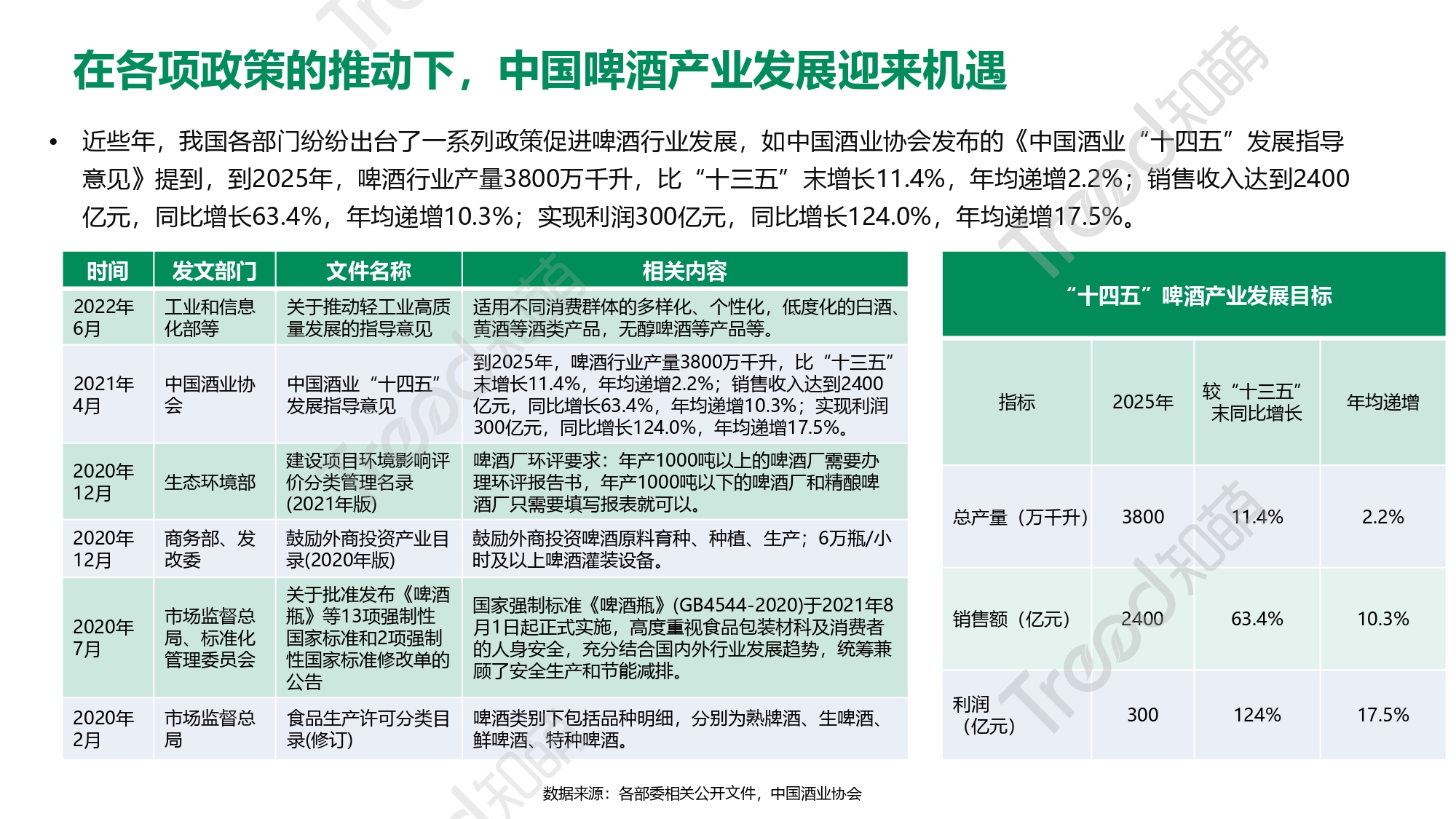 作为水和茶之后世界上消耗量排名第三的饮料,啤酒在当下展现出了巨大的消费潜力。中国的啤酒总产量和消费量已位居世界第一,啤酒产业受到了各级政府的高度重视和国家产业政第的重点支持,总体呈现出创新能力不断提高、质量安全健康有序的良好发展态势。 近年来,顺应国内啤酒市场消费升级和消费需求多样化趋势,各大啤酒企业加速推进转型升级和高端化发展战略,取得了较好的市场反响,为中国味酒的技术进步和长足发展做出了重要的贡献。 今年上半年以来,国内餐饮消费场景全面恢复,啤酒行业的表现如何呢?查看完整报告获取更多关键信息~