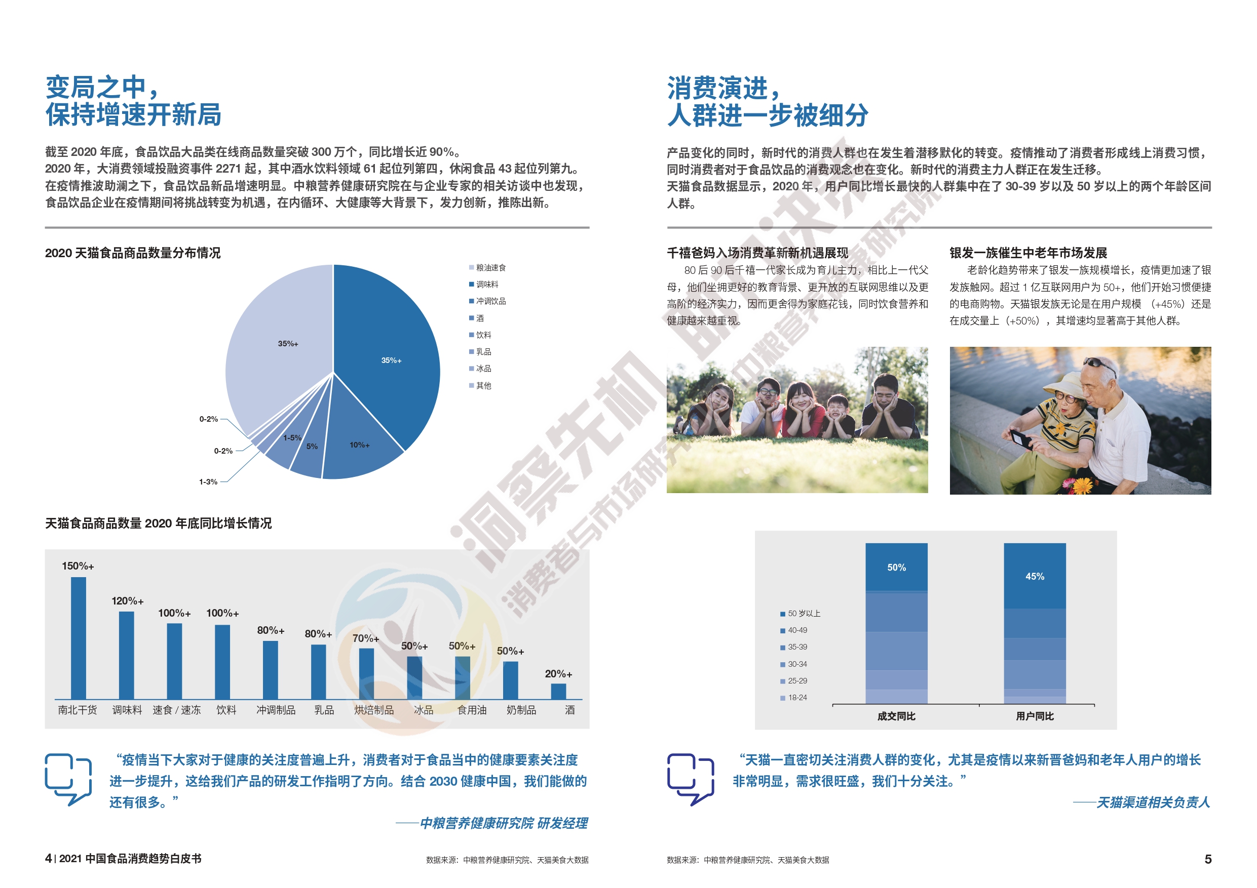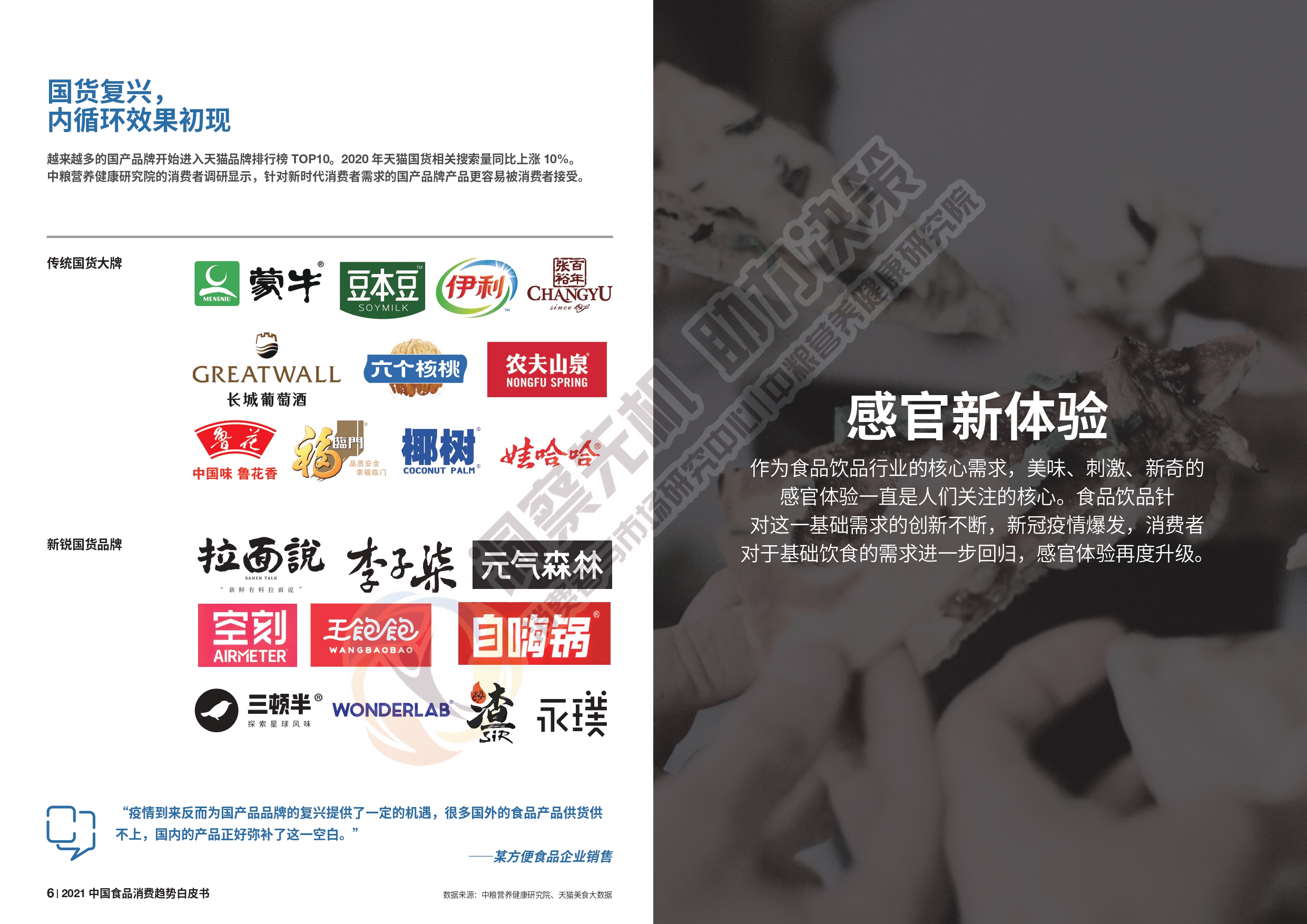 2020 年1 月初,新冠疫情爆发,时至今日依然在全球蔓延,这给世界和中国经济带来了严峻的挑战。与此同时,疫情也深刻改变了中国消费者的需求和行为。食品饮料作为民生需求保障的核心行业,变革首当其冲,挑战与机遇,同时迸发。 新时代,食品行业的变化和趋势可以总结为:感官新体验、健康新平衡、便利新形式、感情新连接、文化新自信,那么食品行业商家应对这种变化该怎么做呢?具体内容可以查看完整报告获取~