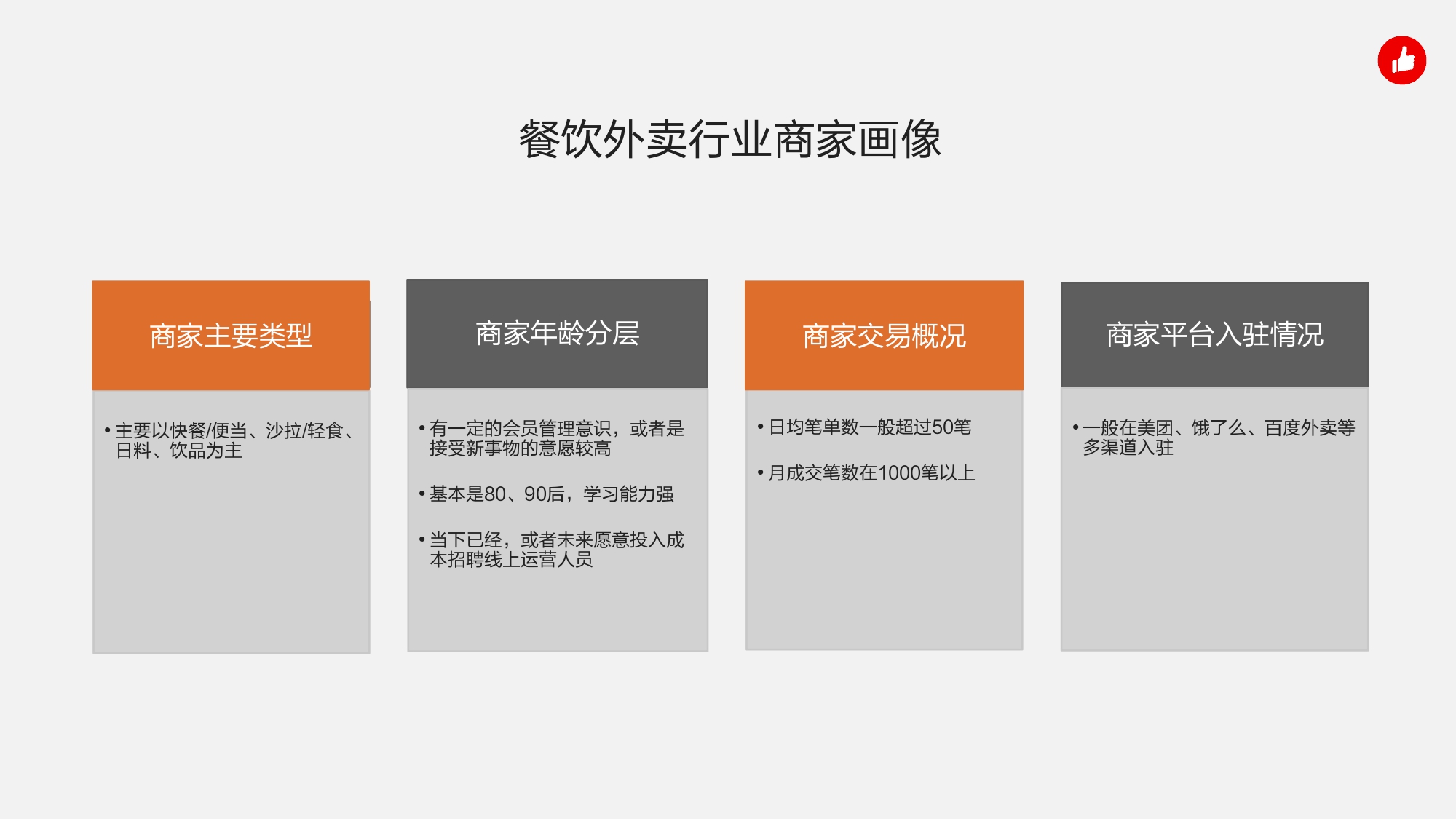 餐饮外卖行业商家普遍存在经营成本较高,生意经营有时间和空间的限制,运营难度也较大,有赞能为餐饮外卖商家做什么呢? 首先,可以一键生成店铺,并且快速对接第三方;还能进行海量营销,帮助商家搭建完整的会员体系,更能为商家提供完整的数据分析,供后期的经营决策和方向调整。 更多玩法和干货,可查看完整报告获取。