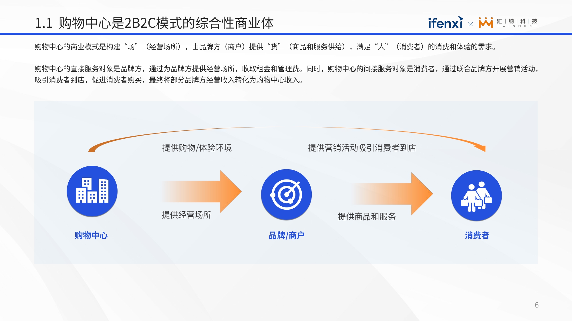 对于购物中心行业,一方面,国家政策鼓励线下实体经济发展,倡导建立智慧商圈,购物中心发展潜力大;另一方面,行业发展进入存量时代,竞争愈发激烈,品牌扩张乏力,购物中心招商压力增大。因此,购物中心从业者需要精细化运营,吸引客流并促进转化,从而在竞争中脱颖而出。 购物中心精细化运营的核心为流量运营,即汇集、管理与经营客流。一般而言,流量运营应该分为数据收集、数据融合以及智能决策三大阶段,从而结合数字化手段感知市场环境、监测场内流量、使用流量数据赋能购物中心运营决策以吸引更多客流、最终通过精准营销手段及场内设备影响场内流量分发,促进消费转化以提高购物中心运营效益。 展望未来,流量运营数字化还可能为购物中心带来业务模式重塑的可能性。购物中心可能超越传统提供“场”的功能,承担提供与经营线下流量的职能,在此基础上,走上探索 “流量运营” 业务模式之路。 更多细节内容查看完整报告获取~