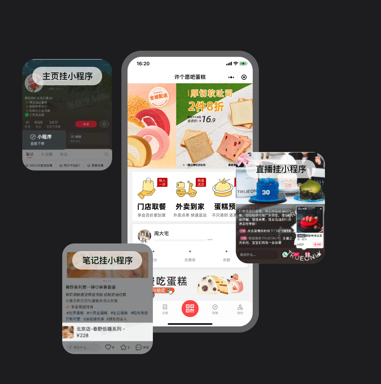 团购核销、同城外卖、同城自提、会员储值、