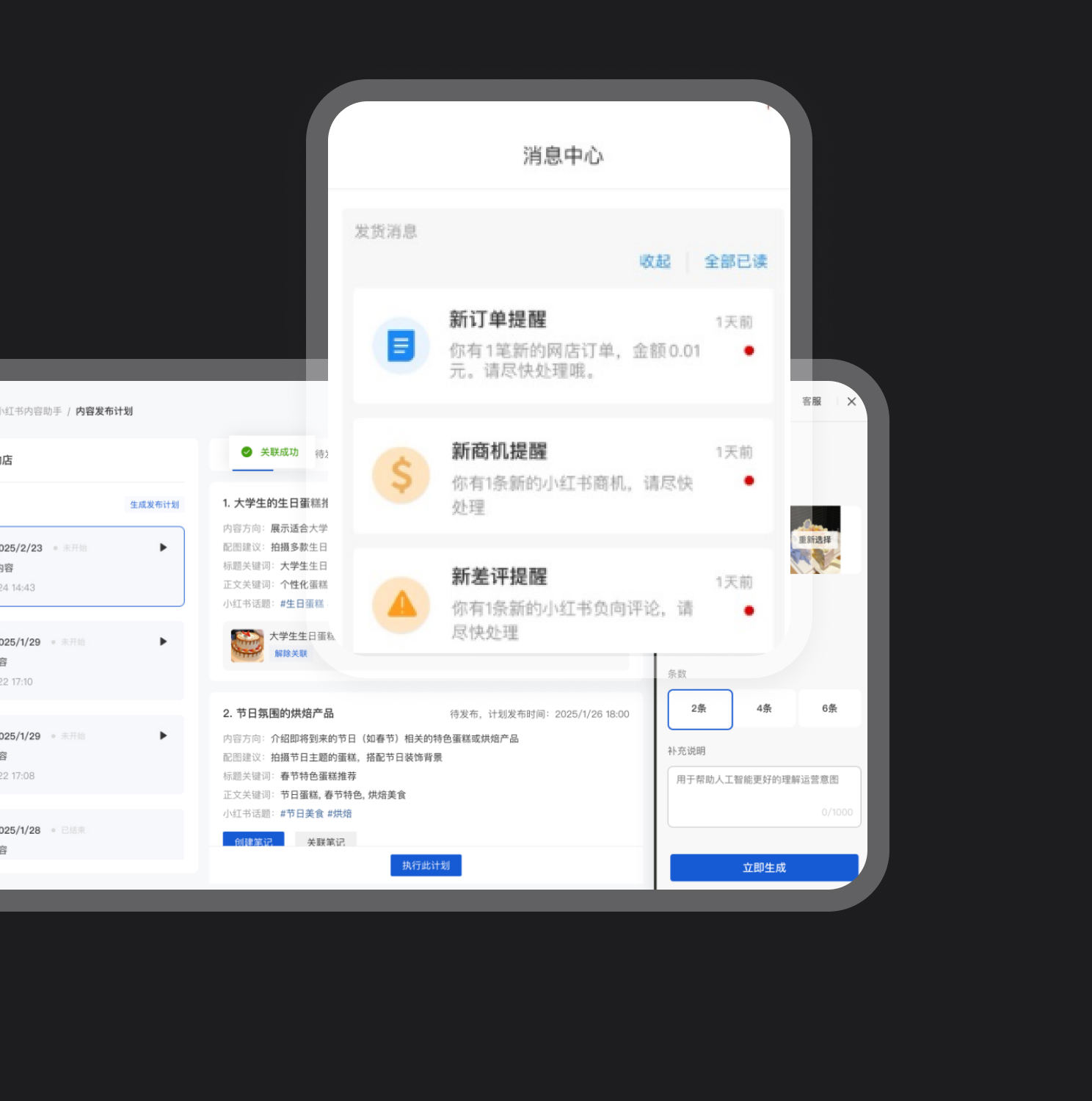 提供从账号搭建、AI 笔记生成、小程序交易到企微引流的全流程工具,商家无需切换多平台,一次性跑通小红书经营闭环。