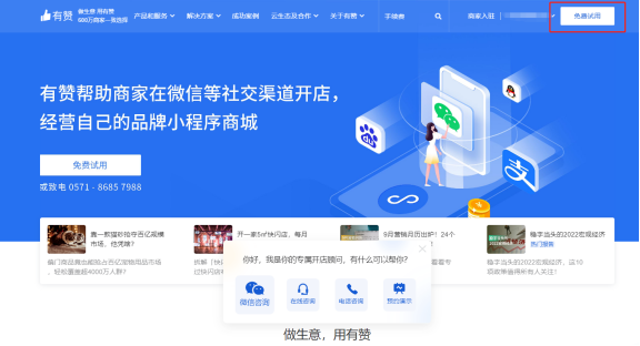 有赞微商城注册/登录账号:在电脑端输入官网链接:youzan.com页面右上方可看到“注册”及“登录”按钮;如下图