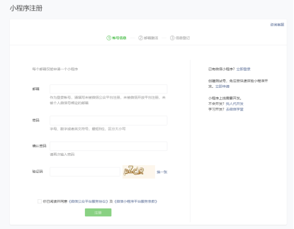 完成第五步注册小程序账号,我们的小程序后台就可以登录上了,接下来我们要做的是