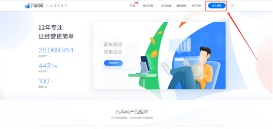 2、点击进入凡科网后,可以看到由上角有个进入管理,我们点击右上角进入管理(在这之前我们首先注册一下账号)