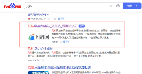 1、搜索引擎搜索凡科或凡科网,找到凡科官网页面如下图