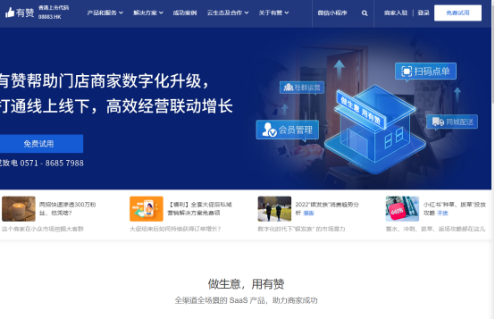 1、通过有赞官网点击右上角的免费试用,进入到有赞商城开店后台