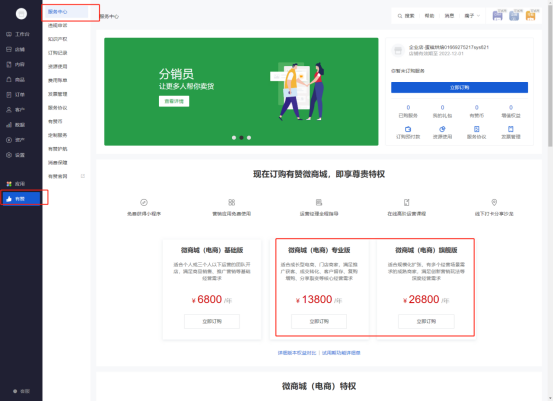 2.2通过分佣推广(有赞客)是可以实现分销推广的,那么这里我们首先需要开通付费的版本,